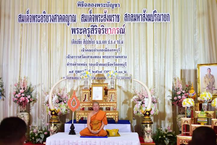 ในมงคลสมัยรับพระบัญชาสมเด็จพระสังฆราชฯ อาศัยอำนาจตามความในข้อ 16 แห่งกฏมหาเถรสมาคม ฉบับที่ 24 (พศ. 2541) ว่าด้วยการแต่งตั้งถอดถอนพระสังฆาธิการ ออกตามความในพระราชบัญญัติคณะสงฆ์ พ.ศ.2505 แก้ไขเพิ่มเติม โดยพระราชบัญญัติคณะสงฆ์ (ฉบับที่ 2) พ.ศ. 2535 และตามมติหมาเถรสมาคม ในการประขุมครั้งที่ 29/2567 เมื่อวันที่ 29 พฤศจิกายน 2567 แต่งตั้งให้ พระครูสิริจริยาภรณ์ (ศิลปะชัย สิปปชโย) อายุ 55 พรรษา 36 วิทยฐานะ ป.ธ.5 น.ธ.เอก รป.ม วัดเสาธงทอง ตำบลท่าหิน อำเภอเมืองลพบุรี จังหวัดลพบุรี ปัจจุบันมีตำแหน่งในทางปกครองคณะสงฆ์เป็นเจ้าคณะอำเภอเมืองลพบุรี ดำรงตำแหน่งรองเจ้าคณะจังหวัดลพบุรี มีอำนาจหน้าที่ปกครองคณะสงฆ์ในเขตจังหวัดของตน ตามที่เจ้าคณะจังหวัดมอบหมาย แต่งตั้ง ณ วันที่ 26 ธันวาคม พุทธศักราช 2567 ตั้งแต่บัดนี้เป็นต้นไป