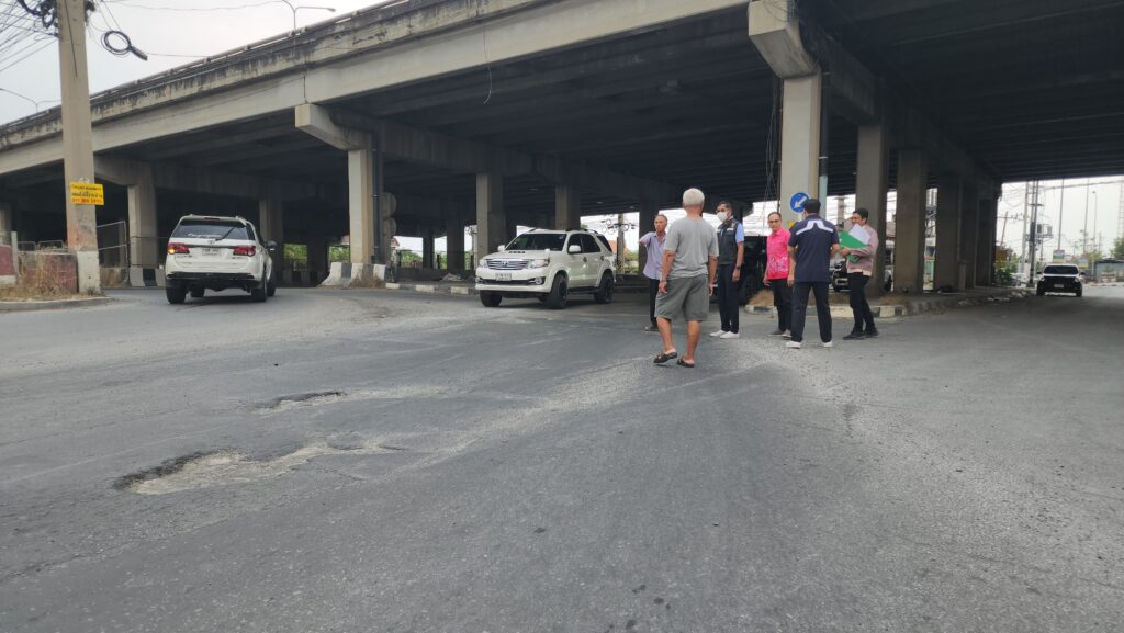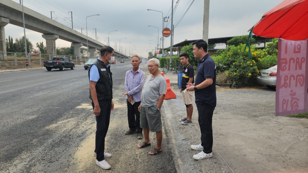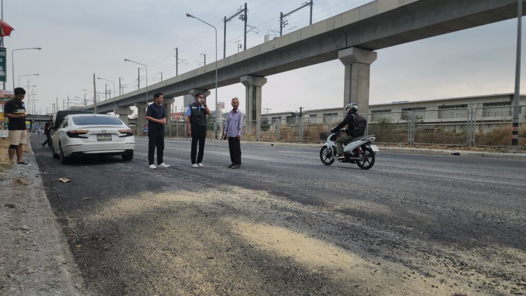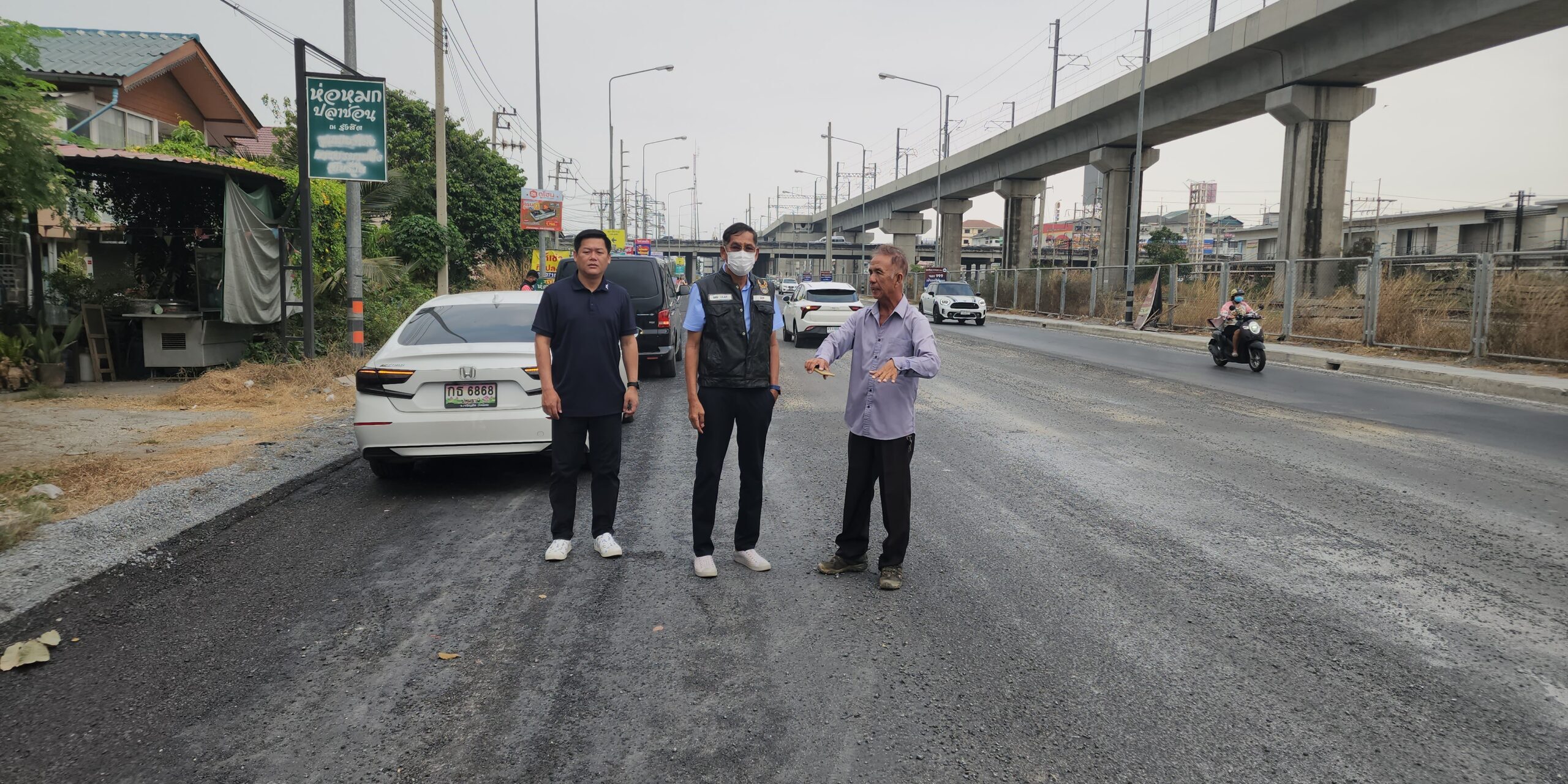 พลตำรวจโท คำรณวิทย์ ธูปกระจ่าง นายกองค์การบริหารส่วนจังหวัดปทุมธานี กล่าวว่า หลังจากที่เราได้รับมอบจากการรถไฟเราก็ดำเนินการซ่อมแซมมาเรื่อย จุดที่ทำการซ่อมแซมไปแล้วก็มีสภาพดีและยังอยู่ในสภาพที่ดี แต่ตอนนี้ยังติดเรื่องงบประมาณ เพราะเรายังไม่ได้สภา แต่วันนี้เราก็กำลังพยายามแก้ปัญหา โดยมีถนนช่วงอื่นเริ่มชำรุดเสียหาย ประชาชนเดือดร้อนแจ้งเข้ามาเป็นจำนวนมาก วันนี้จึงให้กองช่างเข้ามาดู ซึ้งถ้าเป็นไปได้ ฟ้าฝนเป็นใจเราจะทำถนนตรงจุดนี้ให้เสร็จ เพราะประชาชนเดือดร้อนกันเยอะ อีกทั้งยังเกิดฝุ่นละออง แต่ถ้าหากฟ้าฝนไม่เป็นใจ เราก็เร่งดำเนินการให้แล้วเสร็จภายในพรุ้งนี้ ซึ่งน่าจะสามารถรองรับการใช้งานได้ประมาณ 6 เดือน หลังจากนั้น หากมีสภาองค์การบริหารส่วนจังหวัดปทุมธานี แล้ว ก็จะเสนองบ เพื่อดำเนินการสร้างอย่างถาวรต่อไป