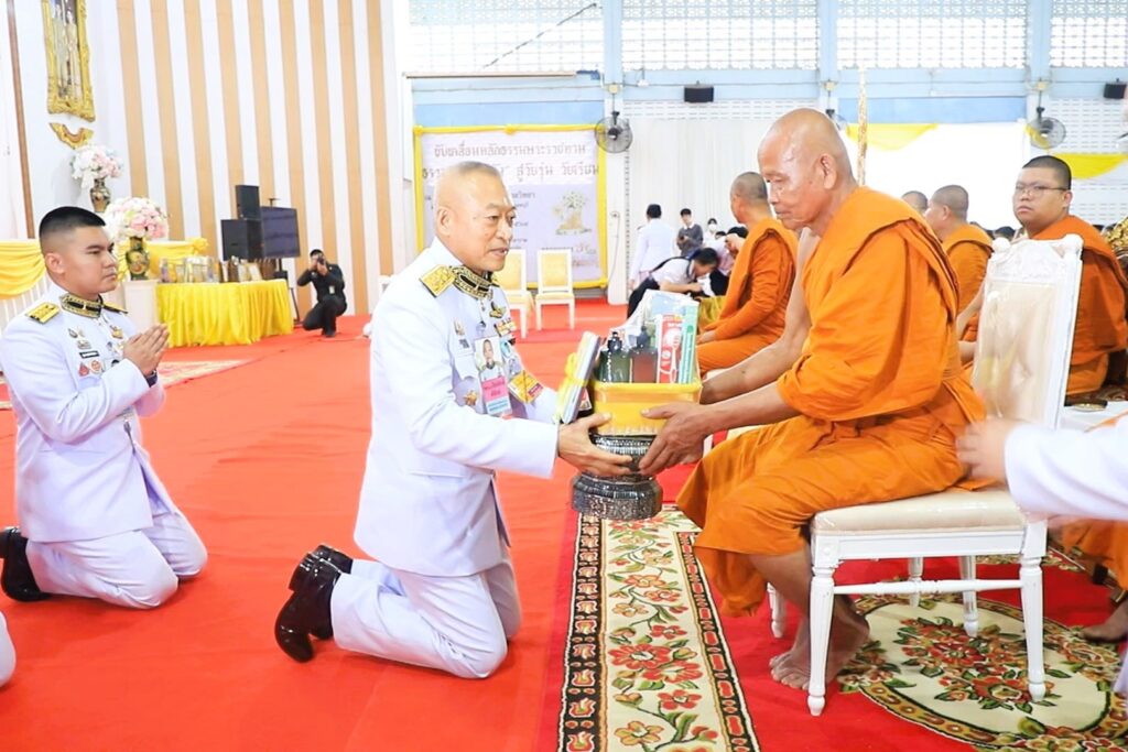 วันที่ 18 กุมภาพันธ์ 2568 เวลา 09.00 น. พระบาทสมเด็จพระเจ้าอยู่หัว ทรงพระกรุณาโปรดเกล้าฯ ให้ พลอากาศเอก อิทธิศักดิ์ ศรีสังข์ ประจำสำนักพระราชวังพิเศษระดับ 10 เชิญชุดหนังสือธรรมนาวา “วัง” จำนวน 15 ชุด และ อาหารพระราชทาน 1,200 ชุด มอบแก่คณะสงฆ์จังหวัดลพบุรี ส่วนราชการ คณะครูนักเรียนโรงเรียนชัยบาดาลวิทยา ตำบลลำนารายณ์ อำเภอชัยบาดาล จังหวัดลพบุรี ในการเผยแพร่พระรัตนตรัยหลักธรรมพระราชทาน ธรรมนาวา “วัง” สู่วัยรุ่น วัยเรียน นอกจากนี้ประธานได้มอบทุนการศึกษาแก่นักเรียนที่ชนะเลิศการระบายรูปภาพหลักธรรมพระราชทานธรรมนาวา “วัง” จำนวน 7 รางวัล ณ หอประชุมโรงเรียนชัยบาดาลวิทยา ตำบลลำนารายณ์ อำเภอชัยบาดาล จังหวัดลพบุรี โดยมีพระครูบุญบาลประดิษฐ์ เจ้าคณะอำเภอชัยบาดาล เป็นประธานฝ่ายสงฆ์ พร้อมด้วย พระครูสิริจริยาภรณ์ รองเจ้าคณะจังหวัดลพบุรี คณะสงฆ์จังหวัดลพบุรี นายประยูร ศิริวรรณ รองผู้ว่าราชการจังหวัดลพบุรี ส่วนราชการ ศาล ทหาร ตำรวจ คณะครู นักเรียน เข้าร่วมพิธีรวมจำนวนกว่า 500 คน ในการนี้ พระราชเมธีวชิรดิลก ผู้ช่วยเจ้าอาวาสวัดชูจิตธรรมารามพระอารามหลวง รักษาการเจ้าอาวาสวัดป่า ศรีอุทุมพร จังหวัดสระบุรี ได้ร่วมบรรยายพิเศษในการเผยแพร่พระรัตนตรัยโดยใช้หลักธรรมพระราชทาน ธรรมนาวา “วัง” แก่คณะคณะครุและนักเรียน อีกด้วย