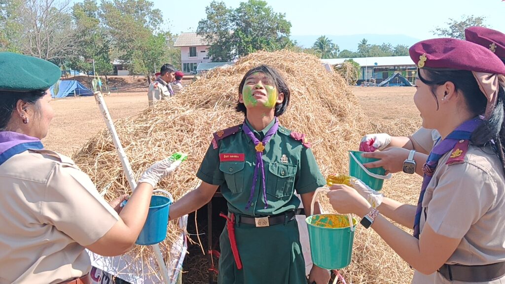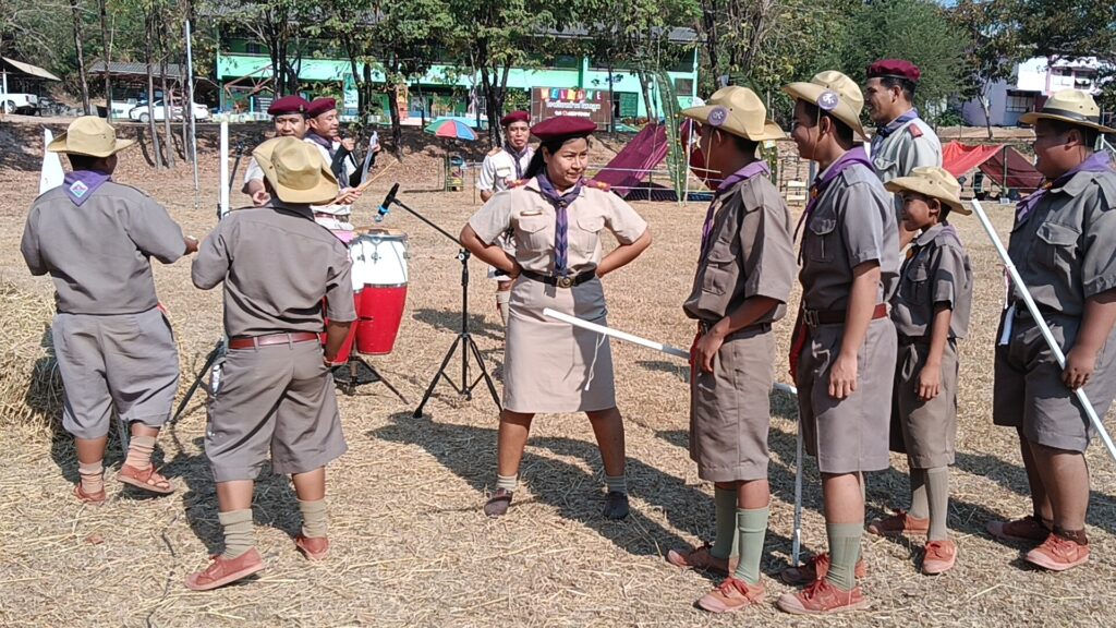วันที่ 19 กุมภาพันธ์ 2568 ช่วงนี้เป็นช่วงปลายเทอมใกล้ปิดภาคเรียน โรงเรียน ต่างๆ ก็เริ่มจัดกิจกรรมพาเด็กๆ และเยาวชน ทำกิจกรรมเดินทางไกล เข้าค่ายพักแรมของ ลูกเสือ และ เนตรนารี เช่นเดียวกันที่ จังหวัดเพชรบูรณ์ ที่ โรงเรียนบ้านโนนตูม ตำบลวังโป่ง อำเภอวังโป่ง จังหวัดเพชรบูรณ์ นางภัทรนาถ วัชรอมรชัย ผู้อำนวยการโรงเรียน ได้จัดกิจกรรมการเข้าค่ายลูกเสือ เนตรนารี สามัญรุ่นใหญ่ โดยให้เด็กๆ เดินทางไกล ใช้ชีวิตผจญภัยเพื่อเป็นประสบการณ์ และ เป็นความรู้ในการดำรงชีพแบบ วิชาลูกเสือ การเข้าค่าย ก็เพื่อปลูกฝังให้นักเรียน เป็นผู้มีระเบียบวินัย มีความสามัคคี ตรงต่อเวลา มีความอดทน ฝึกทักษะในการแก้ปัญหา การทำงานร่วมกับผู้อื่น และ ฝึกให้ ลูกเสือ นำประสบการณ์จากการอยู่ค่ายพักแรม ไประยุกต์ใช้ในชีวิตประจำวัน มีนักเรียนเข้าค่าย 88 คน โดยมี หัวหน้าหมู่ เดินถือธงนำหน้าเพียงแค่ได้เห็นก็รู้สึกสะดุดตา เนื่องจากเด็กๆเหล่านี้ ทาแป้งหลากสีพรางหน้า เห็นครั้งแรกนึกว่าเป็นลูกเสือจากประเทศเพื่อนบ้าน โดยครู จะทาแป้งสี กันทุกคน ซึ่งก็อาจเป็นเพราะเกรงว่าอากาศ และ แดดที่ร้อน จะทำให้ใบหน้าไหม้ จึงต้องให้ทาแป้งสี พรางใบหน้า ซึ่งดูแล้วก็น่ารักดี เป็นสีสัน ชองการเข้าค่ายลูกเสือ เนตรนารี เด็กๆ ต่างเข้าฐานเรียนรู้ ในด่านแรก ด่านผจญภัยไต่เชือก หรือ ฐานคอมมานโด ทำเอานักเรียนทั้งกลัว ทั้งสนุก จากนั้นลูกเสือ และ เนตรนารี ได้เดินผ่านทุ่งไร่-ทุ่งนา ไปลำคลอง เพื่อไปยังฐานที่ 2 คือ ฐานไต่เขา โดยฐานนี้จะใช้เชือกผูกประสานกันแล้วนำไปมัดไว้กับต้นไม้ บนทางขึ้นบนเขา โดยลูกเสือ และ เนตรนารี ใช้ประสบการณ์การไต่เขาผ่านหมดทุกคน จากนั้นเดินไปยังฐานที่ 3 ฐานใยแมงมุมพิษ โดยฐานนี้จะให้ลูกเสือ และ เนตรนารี นอนหงายท้องมองบนฟ้าใช้แขนศอกตะกายผ่านใยแมงมุมให้ได้ โดยสร้างเสียงหัวเราะให้ผู้ปกครอง ที่มาดูบุตรหลาน ของตนเองเข้าค่าย