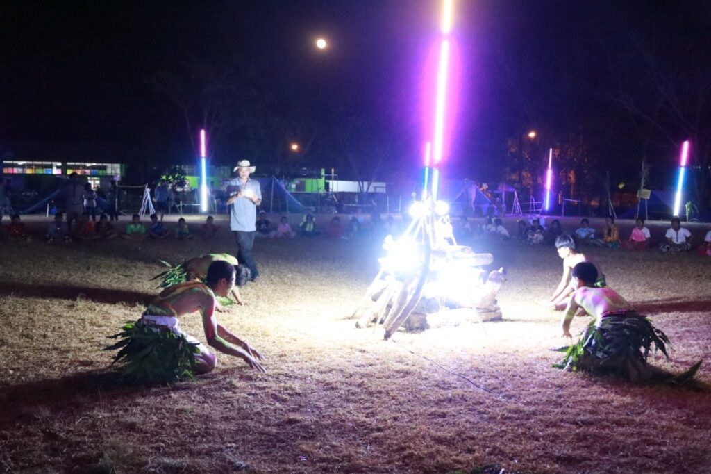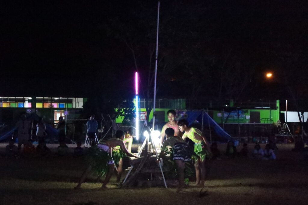 เมื่อถึงช่วงค่ำ โดยมี นายประวัติ วิภาจักษณกุล นายก อบต.วังโป่ง เป็นประธานในพิธีเปิด “รอบกองไฟ” ซึ่งกิจกรรมดังกล่าวนั้น ถือเป็นช่วงไฮไล สำคัญ ที่สร้างสีสัน และ เรียกเสียงฮือฮาเป็นอย่างมาก เมื่อชุดการแสดงของเหล่า ซูลู 2025ปรากฏตัวขึ้นกลางสนาม ซึ่งใช้นักเรียนแสดง ทั้งหมด 5 คน ประกอบด้วย หัวหน้าเผ่า , และ สมาชิกในเผ่า โดยแต่ละคน จะใช้วิธีแต่งกายสไตล์คนป่า ด้วยการนำสีต่างๆ ทาทั่วทั้งตัว แล้วเพ้นท์สีสันสะท้อนแสง โดยเฉพาะหัวหน้าเผ่า ต้องนำกระบองไฟ วิ่งไปจุดให้สมาชิกในเผ่า ครบทั้ง 4 ทิศ แล้วนำจุดที่ก่องฟืน จากนั้นไฟก็ได้ลุกขึ้น กระบองไฟ กองไฟใช้หลอดไฟ LED แทนไฟจริง เพื่อเป็นการป้องกันฝุ่น PM 2.5 จะเกิดขึ้นอีกด้วย สร้างความสนุกสนาน และเรียกเสียงหัวเราะเป็นอย่างมาก