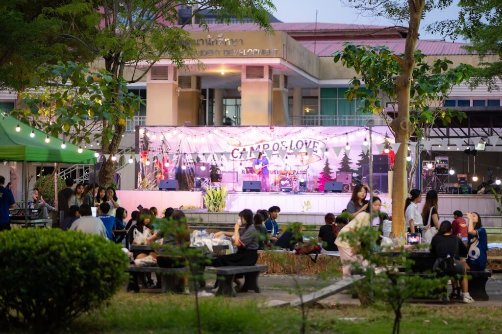 ที่ ลานกิจกรรมนักศึกษา กองพัฒนานักศึกษา มหาวิทยาลัยเทคโนโลยีราชมงคลธัญบุรี นักศึกษาชั้นปีที่ 1 สาขาการตลาด-การจัดการนิทรรศการและการตลาดเชิงกิจกรรม (เอกไมซ์) คณะบริหารธุรกิจ จัดกิจกรรม “Camp of Love” มหกรรมดนตรีในสวน สร้างสรรค์งานอีเว้นท์ระดับมืออาชีพ การวางแผนงาน การประชาสัมพันธ์และจัดการสื่อ การติดต่อประสานงาน และการลงมือปฏิบัติจริง