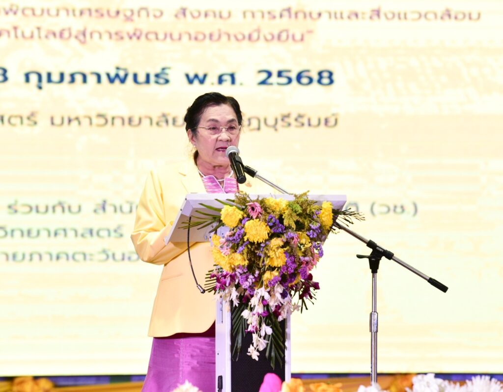 ดร.วิภารัตน์ ดีอ่อง ผู้อำนวยการสำนักงานการวิจัยแห่งชาติ (ผอ.วช.) กล่าวว่า (วช.) ภายใต้ กระทรวง (อว.) ขอขอบคุณมหาวิทยาลัยราชภัฏบุรีรัมย์ และ หน่วยงานเครือข่ายในระบบวิจัยภาคตะวันออกเฉียงเหนือ ที่ได้ให้ความร่วมมือร่วมใจ ในการจัดงาน “มหกรรมงานวิจัยส่วนภูมิภาค ประจำปี 2568” (Regional Research Expo 2025)” ครั้งที่ 13 สำเร็จลุล่วงไปด้วยดี หวังว่าผู้เข้าร่วมงานได้รับองค์ความรู้จากผลงานวิจัยและนวัตกรรมจากการจัดกิจกรรมภาคนิทรรศการ ภาคการประชุมวิชาการ สัมมนา และประสบการณ์ทางด้านการวิจัย การนำผลงานวิจัยไปใช้ประโยชน์ในหลากหลายรูปแบบตลอดจนได้เห็นความเชื่อมโยงสัมพันธ์อันดีของเครือข่ายความร่วมมือของภาคตะวันออกเฉียงเหนือ ในการร่วมส่งต่อขยายผลงานวิจัยและนวัตกรรมสู่สาธารณะ เพื่อสร้างฐานความรู้ที่มีคุณค่าต่อการพัฒนาชุมชน สังคม ในพื้นที่ภูมิภาคภาคตะวันออกเฉียงเหนือส่งเสริมเศรษฐกิจท้องที่ เศรษฐกิจท้องถิ่น ด้วยวิจัยและนวัตกรรม และเพิ่มขีดความสามารถในการแข่งขันให้แก่ประเทศโดยรวมขอขอบคุณผู้ทรงคุณวุฒิทุกท่านที่ให้เกียรติร่วมบรรยาย เสวนา ขอบคุณนักวิจัย นักวิชาการ ผู้เข้าร่วมการประชุมและกิจกรรมภาคนิทรรศการ ตลอดจนคณะกรรมการจัดงานทุกฝ่ายที่มีส่วนทำให้การจัดงานครั้งนี้ประสบความสำเร็จบรรลุผลตามเป้าหมาย และขอแสดงความยินดีกับหน่วยงานที่ได้รับรางวัลการประกวดนิทรรศการงานวิจัยและนวัตกรรม ซึ่งคาดหวังเป็นอย่างยิ่งว่าผลงานเหล่านี้จะได้รับการนำไปใช้ให้เกิดประโยชน์อย่างแท้จริงในระดับภูมิภาคต่อไป