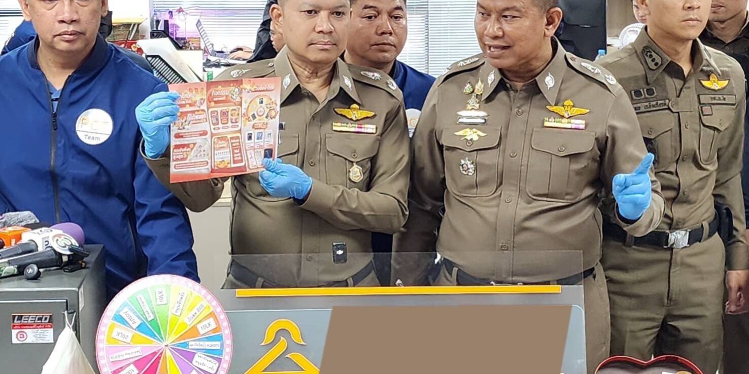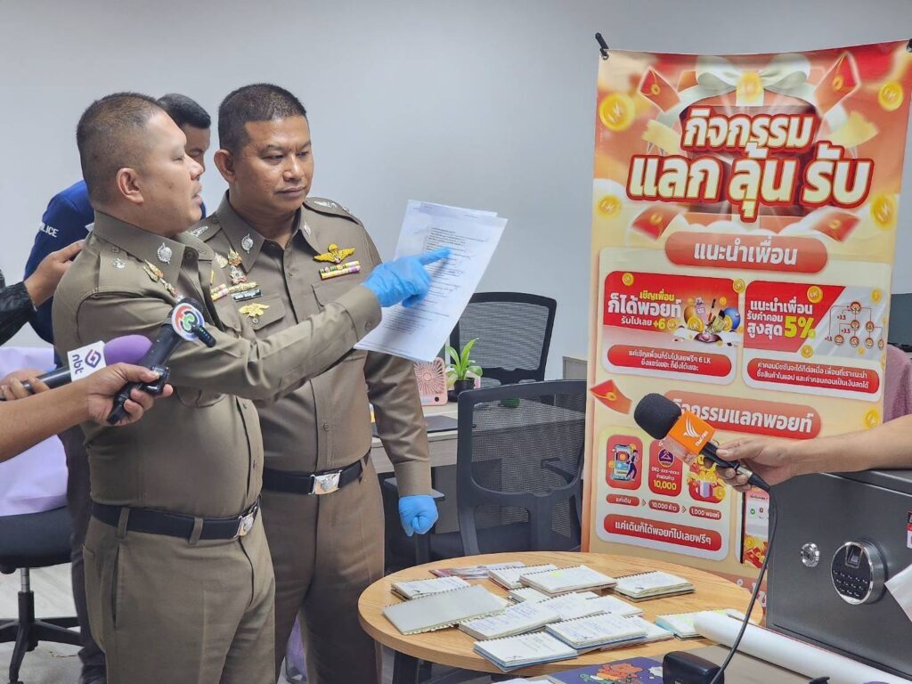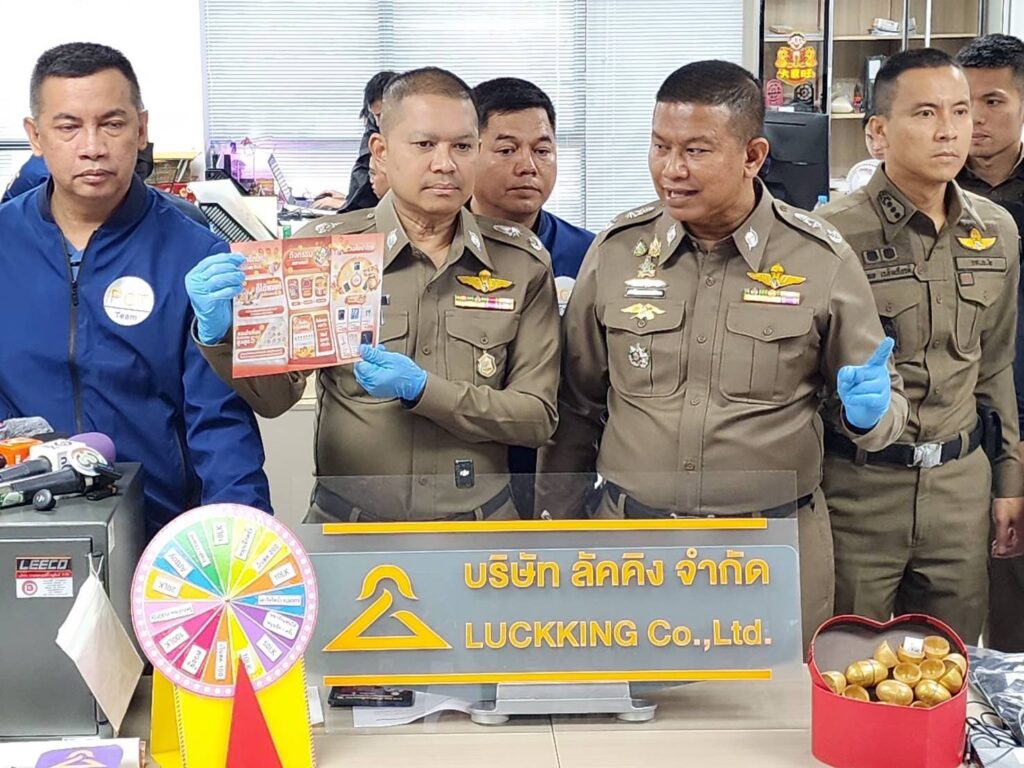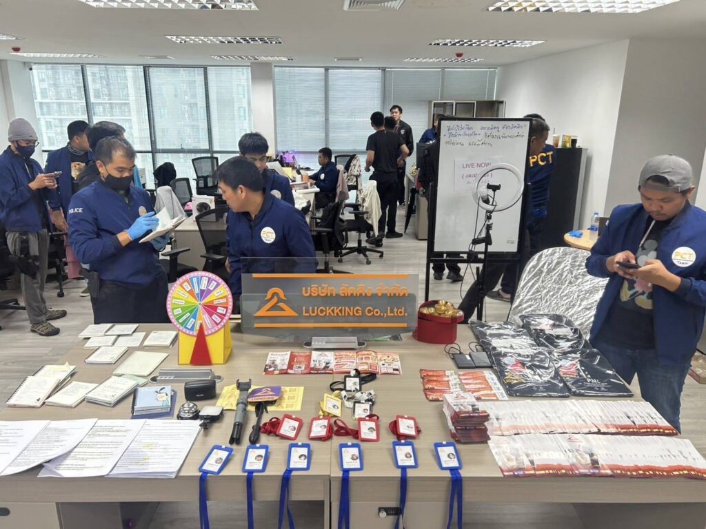 สามารถตรวจยึด ป้ายบริษัท ลัคคิง จำกัด,บัตรห้อยคอพนักงาน 13 ใบ,เสื้อโปโล,โลโก้ลายปัก,วงล้อเสี่ยงทาย,แผ่นสติกเกอร์คิวอาร์โค๊ดไลน์,แผ่นคูปองเติมเงิน,โบชัวร์,อุปกรณ์สำหรับไลฟ์สด,เอเทอร์นอล,ฮาร์ดดิส,ไข่ทองสำหรับจับรางวัล,สมุดโน๊ต,เอกสารที่เกี่ยวข้องของบริษัท ลัคคิง จำกัด,ตู้เซฟ