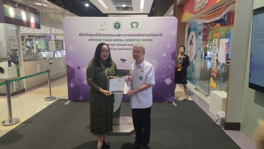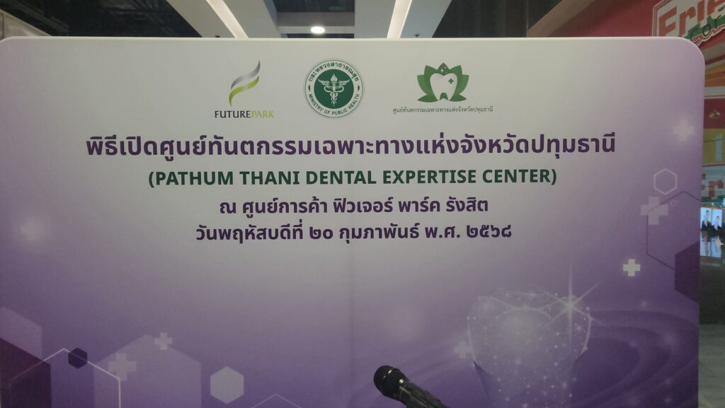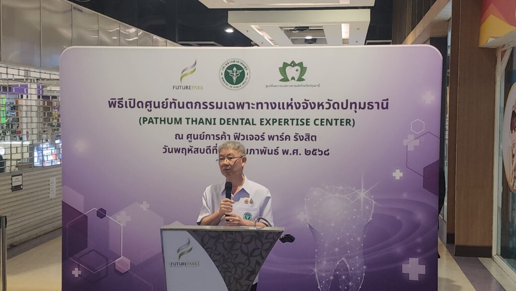 เมื่อเวลา 11.00 น. วันที่ 20 กุมภาพันธ์ 2568 ที่ ศูนย์ทันตกรรมเฉพาะทางแห่งจังหวัดปทุมธานี ศูนย์การค้าฟิวเจอร์พาร์ค และสเปลล์ ชั้น 3 ฝั่งอีสต์ จังหวัดปทุมธานี นายแพทย์โอภาส การย์กวินพงศ์ ปลัดกระทรวงสาธารณสุข เป็นประธานในพิธีเปิดศูนย์ทันตกรรมเฉพาะทางแห่งจังหวัดปทุมธานี และกล่าวว่า ศูนย์ทันตกรรมเฉพาะทางฯ เป็นหน่วยบริการด้านทันตกรรมที่ใช้แนวทางบริหารจัดการตามนโยบายโรงพยาบาลทันตกรรม และ One Province One Dental Hospital ของกระทรวงสาธารณสุข คือ มีการบริหารจัดการทรัพยากรร่วมกันเป็นภาพรวมของจังหวัดปทุมธานี ซึ่งทำให้เกิดการใช้งบประมาณอย่างคุ้มค่าและเกิดประโยชน์สูงสุดต่อทางราชการ โดยบริหารงานภายใต้สังกัดโรงพยาบาลประชาธิปัตย์ จังหวัดปทุมธานี ให้บริการทั้งทันตกรรมทั่วไปและทันตกรรมเฉพาะทางทุกสาขา โดยทันตแพทย์เฉพาะทางจากทุกโรงพยาบาลในจังหวัดปทุมธานี