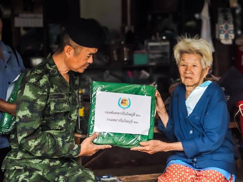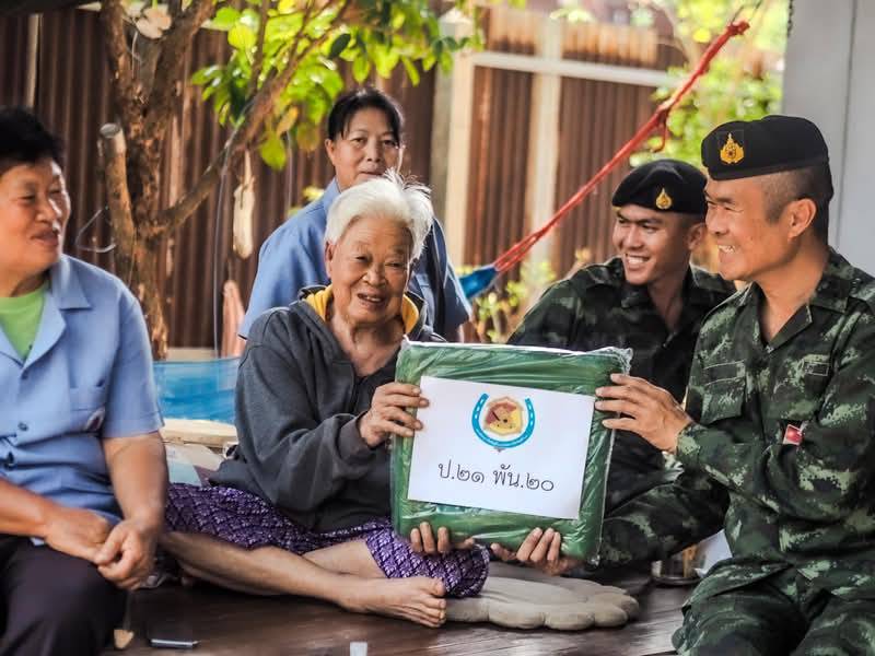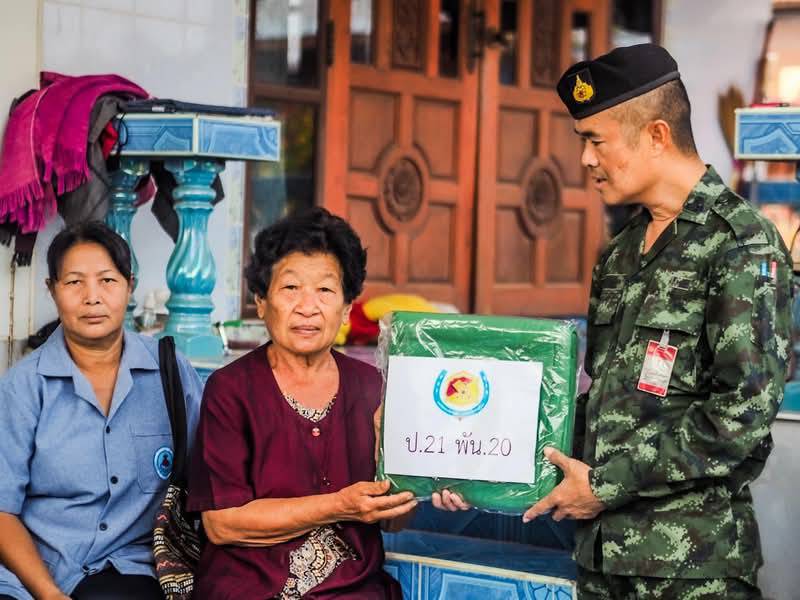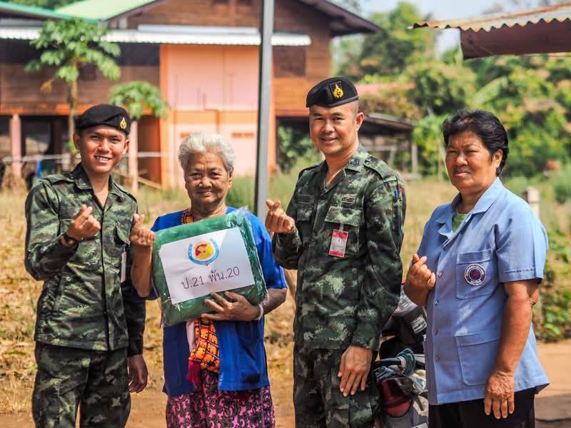 ร่วมกับ อาสาสมัครสาธารณสุขประจำหมู่บ้าน (อสม.) ลงพื้นที่มอบผ้าห่มกันหนาว เพื่อบรรเทาความหนาว ให้กับผู้สูงอายุ ผู้พิการ และผู้ยากไร้ ในพื้นที่ ตำบลด่านแม่คำมัน อำเภอลับแล จังหวัดอุตรดิตถ์ ซึ่งช่วงนี้อุณหภูมิลดลงอย่างต่อเนื่อง ทางชุุดปฏิบัติการกิจการพลเรือน กองพันทหารปืนใหญ่ที่ 20 กรมทหารปืนใหญ่ที่ 21 มีความห่วงใยประชาชนจึงจัดกิจกรรมมอบผ้าห่มคลายหนาว สร้างความอบอุ่นให้กับประชาชนในหมู่บ้าน ซึ่งกิจกรรมในครั้งนี้ประชาชนในพื้นที่รู้สึกดีใจ และปลาบปลื้มยินดีเป็นอย่างมาก ที่ทหารได้ให้ความช่วยเหลือประชาชนในทุกโอกาส ณ ตำบลด่านแม่คำมัน อำเภอลับแล จังหวัดอุตรดิตถ์