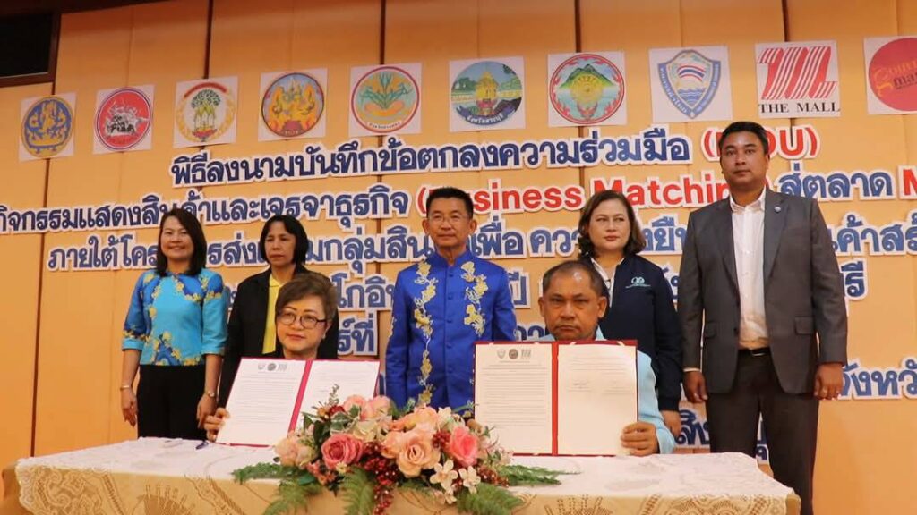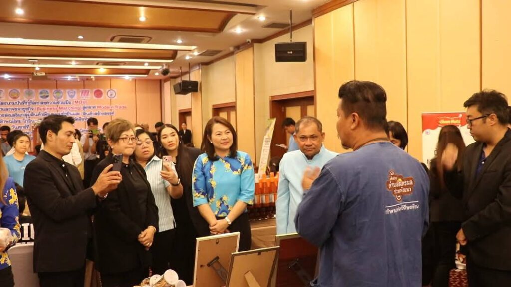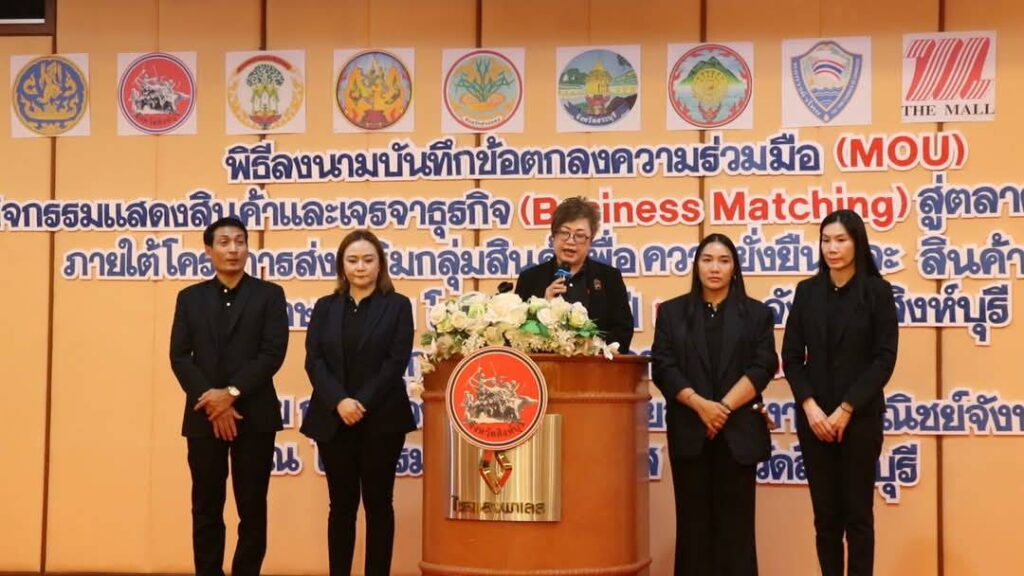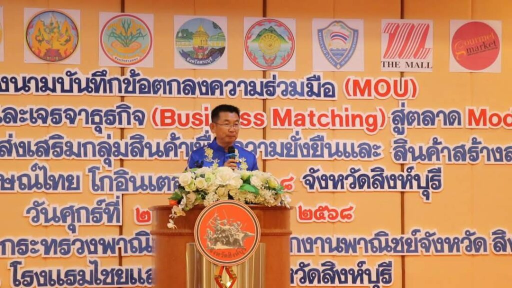 วันศุกร์ที่ 21 กุมภาพันธ์ 2568 นายสุเมธ ธีรนิติ ผู้ว่าราชการจังหวัดสิงห์บุรีเป็นประธานเปิดงานกิจกรรมพิธี ลงนามบันทึกข้อตกลงความร่วมมือ (MOU)กิจกรรมแสดงสินค้าและเจรจาธุรกิจ (Business Matching) สู่ตลาด Modern Trade พร้อมด้วย รองผู้ว่าราชการจังหวัดสิงห์บุรี คุณสายชล อชานนท์ ผู้จัดการฝ่ายอาวุโสบริหารสินค้า Gourmet Fresh กูร์เมต์ มาร์เก็ต ในเครือ กลุ่มบริษัท เดอะมอลล์ กรุ๊ป จำกัด พาณิชย์จังหวัดกลุ่มจังหวัดภาคกลางตอนบน ประธานหอการค้ากลุ่มจังหวัดภาคกลางตอนบน ประธานหอการค้าจังหวัดสิงห์บุรี ประธานหอการค้าจังหวัดกลุ่มภาคกลางตอนบนบน หัวหน้าส่วนราชการ ภาคเอกชนจังหวัดสิงห์บุรี และสื่อมวลชน เข้าร่วมกิจกรรมฯ ณ ห้องโสมชา โรงแรมไชยแสง พาเลส อำเภอเมืองสิงห์บุรี จังหวัดสิงห์บุรี