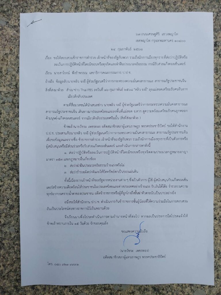 วันนี้ 24 กุมภาพันธ์ 2568 เวลา 15.30 น นายวัชระ เพชรทอง อดีต สส. พรรคประชาธิปัตย์ ได้เข้าพบกับ นายจตุพร บุรุษพัฒน์ ปลัดกระทรวงทรัพยากรธรรมชาติและสิ่งแวดล้อม เพื่อติดตามเรื่องความเดือดร้อนของชาว ต.สำนักท้อน อ.บ้านฉาง จ.ระยอง ที่ได้รับความเดือนร้อนไม่มีไฟฟ้าใช้ จำนวน 473 ครัวเรือน เนื่องจากว่า ไม่ได้รับความยินยอมจากกรมป่าไม้
