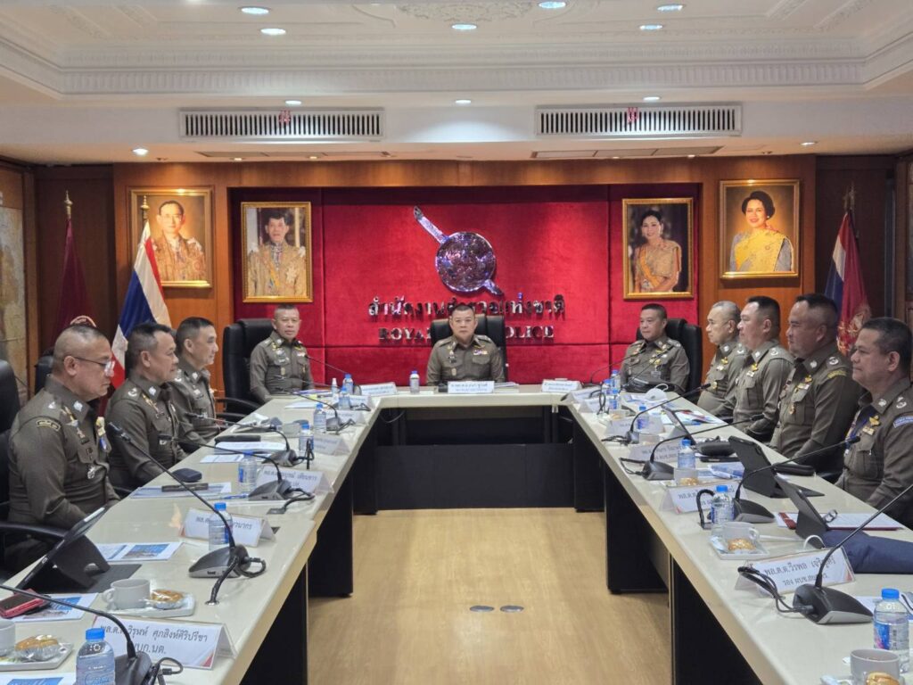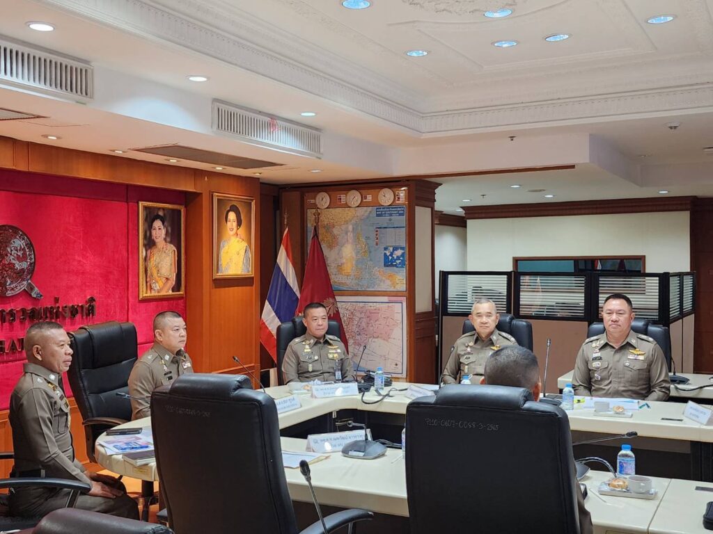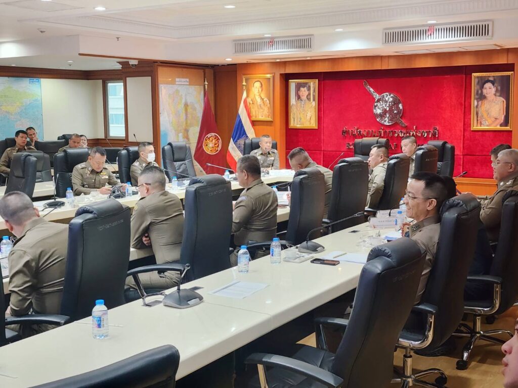 รอง ผบช.สตม.,พล.ต.ต.สมบูรณ์ เทียนขาว รอง ผบช.ปส.,พล.ต.ต.ทินกร รังมาตย์ รอง ผบช.สอท. และเจ้าหน้าที่ที่เกี่ยวข้องเข้าร่วมประชุม