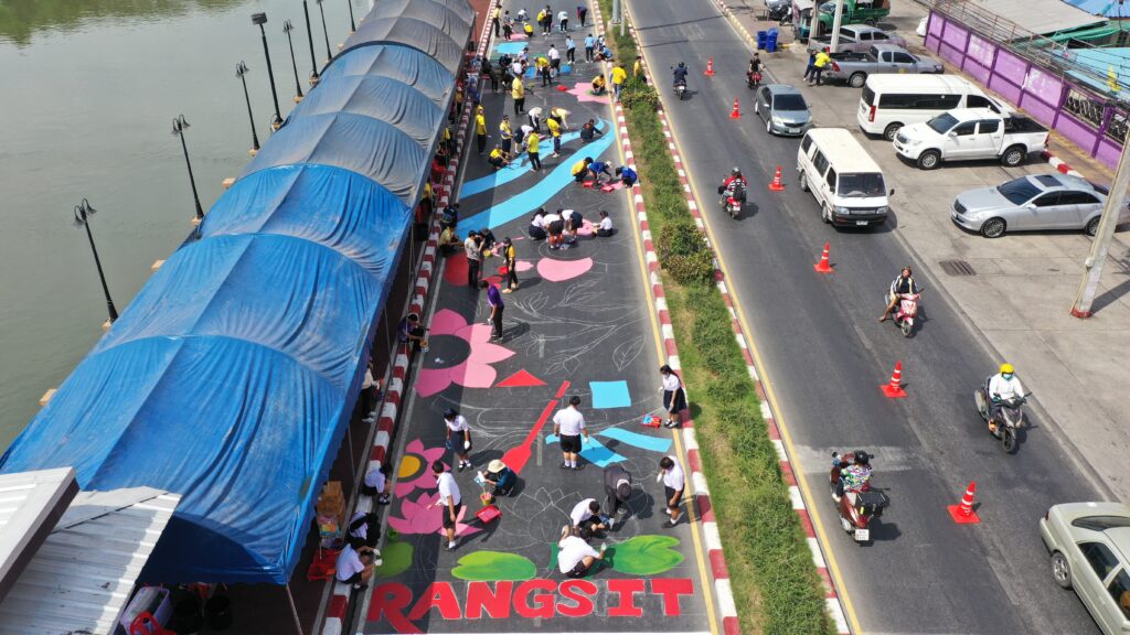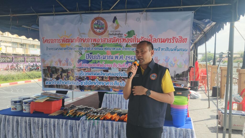 ด้าน ร้อยตำรวจเอก ดร.ตรีลุพธ์ ธูปกระจ่าง นายกเทศมนตรีนครรังสิต กล่าวว่า โครงการนี้เป็นโรงการจิตสาอา ที่จะช่วยกันรักษาโลกร้อน และ สิ่งต่างๆ โดยงานที่จัดขึ้นวันนี้เป็นงานที่ทางเทศบาลดำเนินการอยู่แล้ว แต่ครั้งนี้เราอยากให้ ชุมชน และ โรงเรียนมีส่วนร่วมในการดำเนินโครงการ เพื่อร่วมกันพัฒนาให้พื้นที่บริเวณจุดนี้ มีสีสัน เนื่องจากพื้นที่ตรงนี้เราได้ดำเนินการประบภูมิทัศน์ไปแล้ว รวมถึงเป็นจุดจัดงานถนนคนเดิน walking street ของเทศบาลนครรังสิตของเรา ซึ่งจะเป็นการกระตุ้นเศรษฐกิจฐานราก ดังนั้นเราจึงเน้นพัฒนาพื้นที่ตรงจุดนี้ และเราอยากให้มีส่วนร่วมกับชุมชน และ น้องๆ เยาวชนให้เกิดขึ้น เพื่อช่วยกันรักษาชุมชน และ เทศบาลนครรังสิตของเราเป็นเทศบาลนครรังสิที่น่าอยู่ ยั่งยืนต่อไป มาร่วมเปลี่ยนแปลงนครรังสิตเพื่อคุณภาพชีวิตที่ดีกว่าด้วยกัน ส่วนระยะเวลาในการดำเนินการกิจกรรมนี้ คาดว่า จะแล้วเสร็จช่วงต้นเดือนมีนาคม 2568 นี้