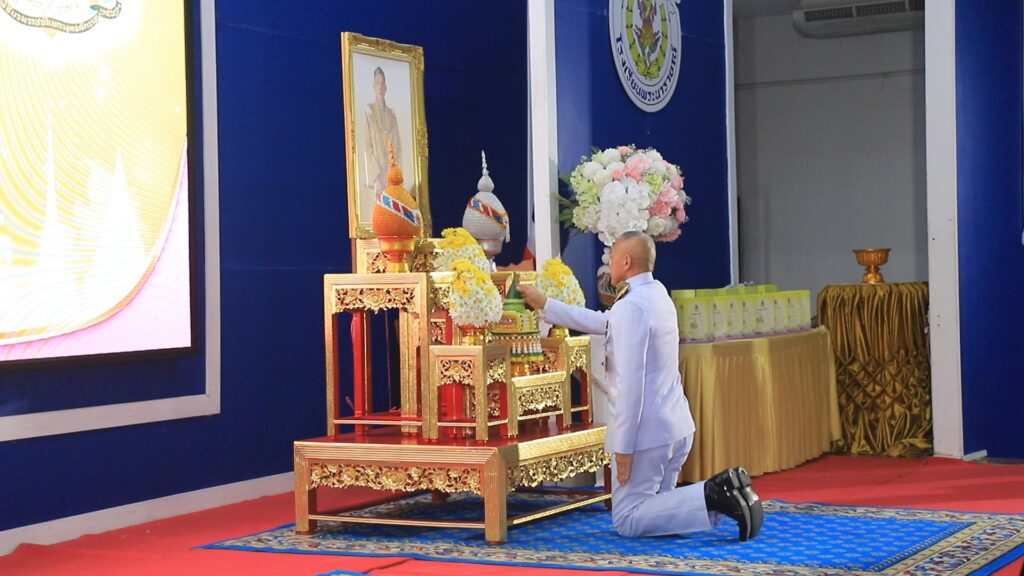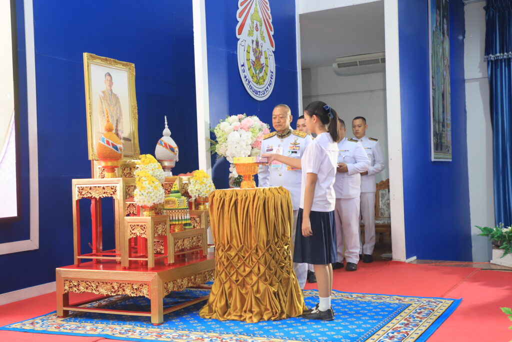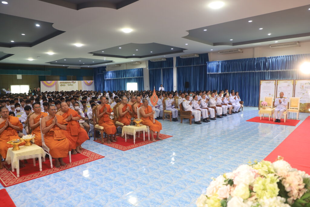 วันที่ 21 กุมภาพันธ์ 2568 เวลา 09.00 น. พระบาทสมเด็จพระเจ้าอยู่หัว ทรงพระกรุณาโปรดเกล้าฯ ให้ พลอากาศเอก อิทธิศักดิ์ ศรีสังข์ ประจำสำนักพระราชวังพิเศษระดับ 10 เชิญชุดหนังสือธรรมนาวา “วัง” จำนวน 15 ชุด และ อาหารพระราชทาน 1,500 ชุด มอบแก่คณะสงฆ์วัดเสาธงทอง พระอารามหลวง คณะสงฆ์อำเภอเมืองลพบุรี ส่วนราชการ คณะครูนักเรียนโรงเรียนพระนารายณ์ ตำบลท่าศาลา อำเภอเมืองลพบุรี จังหวัดลพบุรี ในการเผยแพร่พระรัตนตรัยหลักธรรมพระราชทาน ธรรมนาวา “วัง” สู่วัยรุ่น วัยเรียน นอกจากนี้ประธานได้มอบทุนการศึกษาแก่นักเรียนที่ชนะเลิศการระบายรูปภาพหลักธรรมพระราชทานธรรมนาวา “วัง” จำนวน 7 รางวัล ณ หอประชุมโรงเรียนพระนารายณ์ โดยมีพระครูสิริจริยาภรณ์ รองเจ้าคณะจังหวัดลพบุรี เป็นประธานฝ่ายสงฆ์ พร้อมด้วย พระกิตติญาณเมธี เจ้าอาวาสวัดกลาง เจ้าคณะอำเภอเมืองลพบุรี (ธ) คณะสงฆ์วัดเสาธงทอง พระอารามหลวง คณะสงฆ์อำเภอเมืองลพบุรี นายประยูร ศิริวรรณ รองผู้ว่าราชการจังหวัดลพบุรี ส่วนราชการ ศาล ทหาร ตำรวจ คณะครู นักเรียน เข้าร่วมพิธีรวมจำนวนกว่า 600 คน
