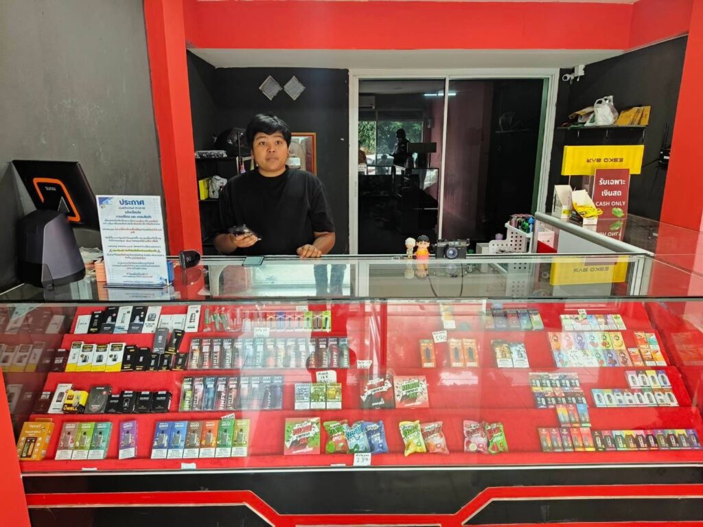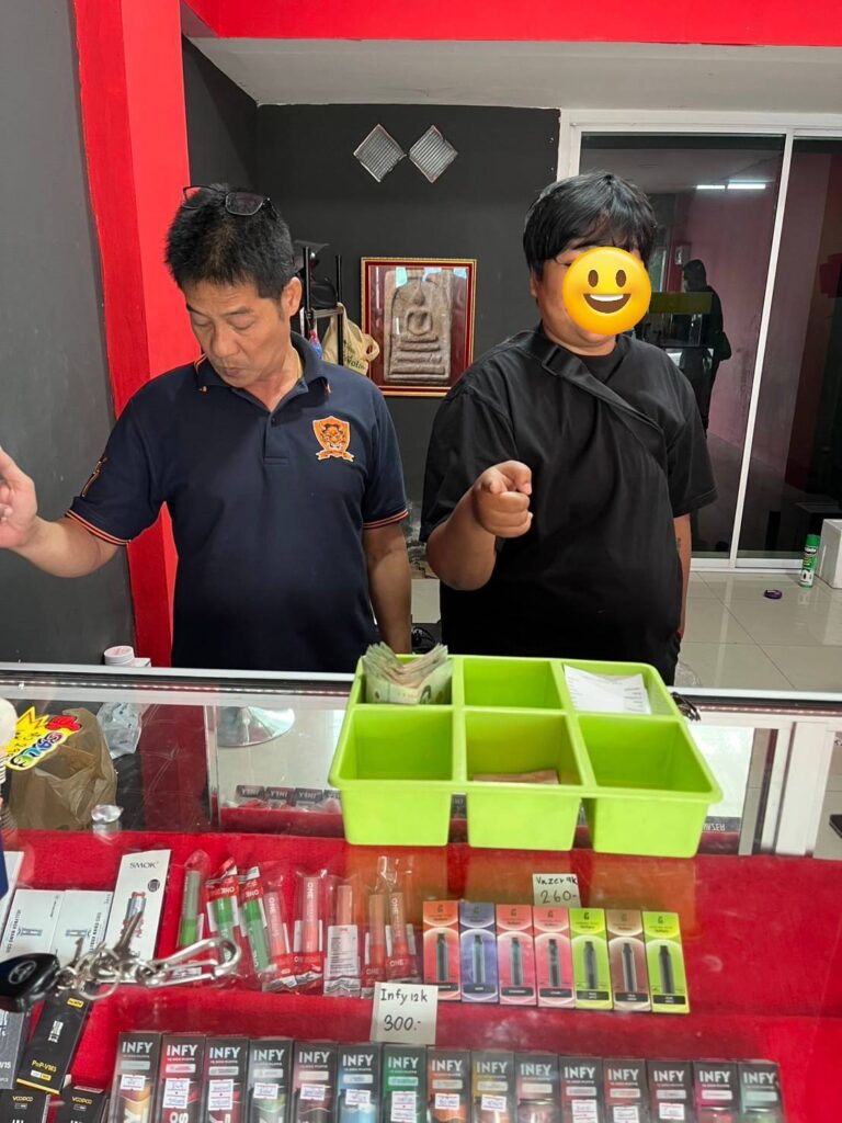 ผกก.สภ.เมืองสมุทรสาคร ได้สั่งการให้ พ.ต.ท.สุขุม เพาะไธสง รอง ผกก.ป. ,พ.ต.ท.โสภาส ถนนทิพย์ สวป.พร้อมกำลังเจ้าหน้าที่ตำรวจ สายตรวจ ออกกวาดล้างจับกุมร้านจำหน่ายบุหรี่ไฟฟ้าตามนโยบายของพล.ต.ต.ธีระเดช อธิภัคกุล ผบก.ภ.จว.สมุทรสาคร พบร้านขายบุหรีไฟฟ้า บริเวณชั้นล่างแมนชั่น 9/19 A1ม.3ตำบลบางน้ำจืด อำเภอเมืองจังหวัดสมุทรสาคร เปิดร้านขายแบบโจ่งแจ้ง ชนิดไม่เกรงกลัวกฎหมาย มีบุหรีไฟฟ้าพร้อมน้ำยาหัวเชื้อทุกกลิ่นวางอยู่จำนวนมากในตู้โชว์กระจกขนาดใหญ่ พร้อมรับประกันในตัวสินค้าหลังการขายหากไม่พอใจ ไม่ตรงปก สามารถนำมาปลี่ยนมาเคลมอันใหม่ได้เจ้าหน้าที่ตำรวจจึงเข้าทำการจับกุม ค้นภายในร้านยังพบบุหรี่ไฟฟ้าและหัวเชื้ออีกจำนวนมากโดยมีนางสาวปุณยาพร ปานทอง อายุ 26 ปีรับเป็นเจ้าของร้าน