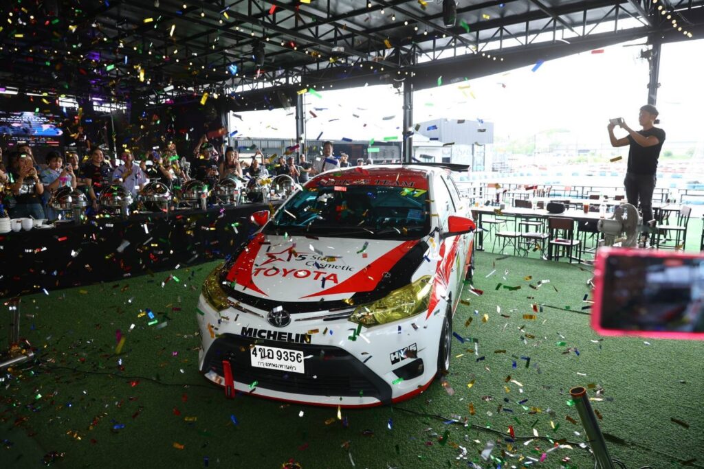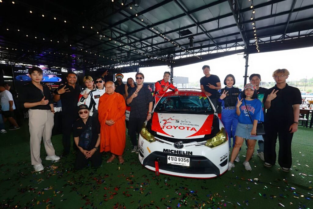 จากนั้นเป็นพิธี “เจิมรถ” โดยได้รับความเมตตาจาก “หลวงพ่อหม่อมเหยิน” หรือ “พระสมุห์ประสิทธิ์ชาคโร” ทำพิธีเจิมรถเพื่อเอาฤกษ์เบิกชัย คว้าชัยในทุกๆ สนาม ตบท้ายด้วยการเปิดตัวรถแข่งคันแรกของทีม โดยมีนักแสดงและพิธีกรหนุ่มที่รักความเร็วอย่าง บีม-ศรัณยู ประชากิจ ขับรถโชว์เพื่อเช็คความพร้อม ซึ่ง หนุ่มบีม บอกว่า “รถดีมากเลยครับ รถขับดีมาก เซ็ทอัพไว้ดีมาก เดี๋ยวดูว่าในการแข่งขันต้องปรับให้เข้ากับกติกาการแข่งขันอย่างไร”