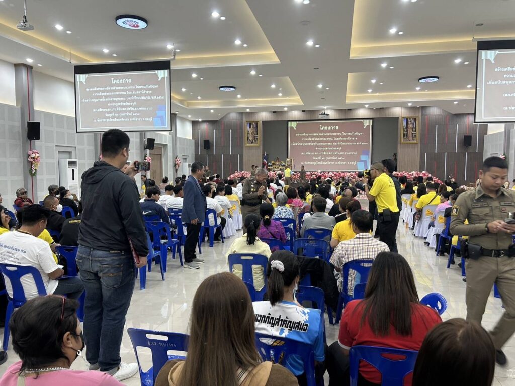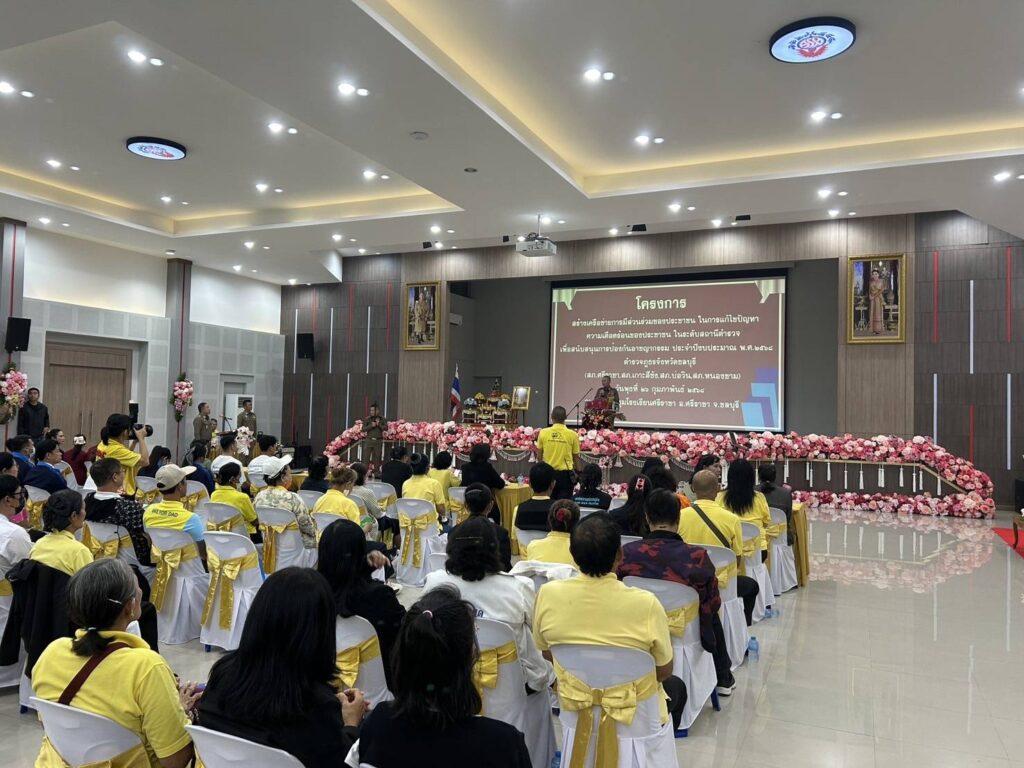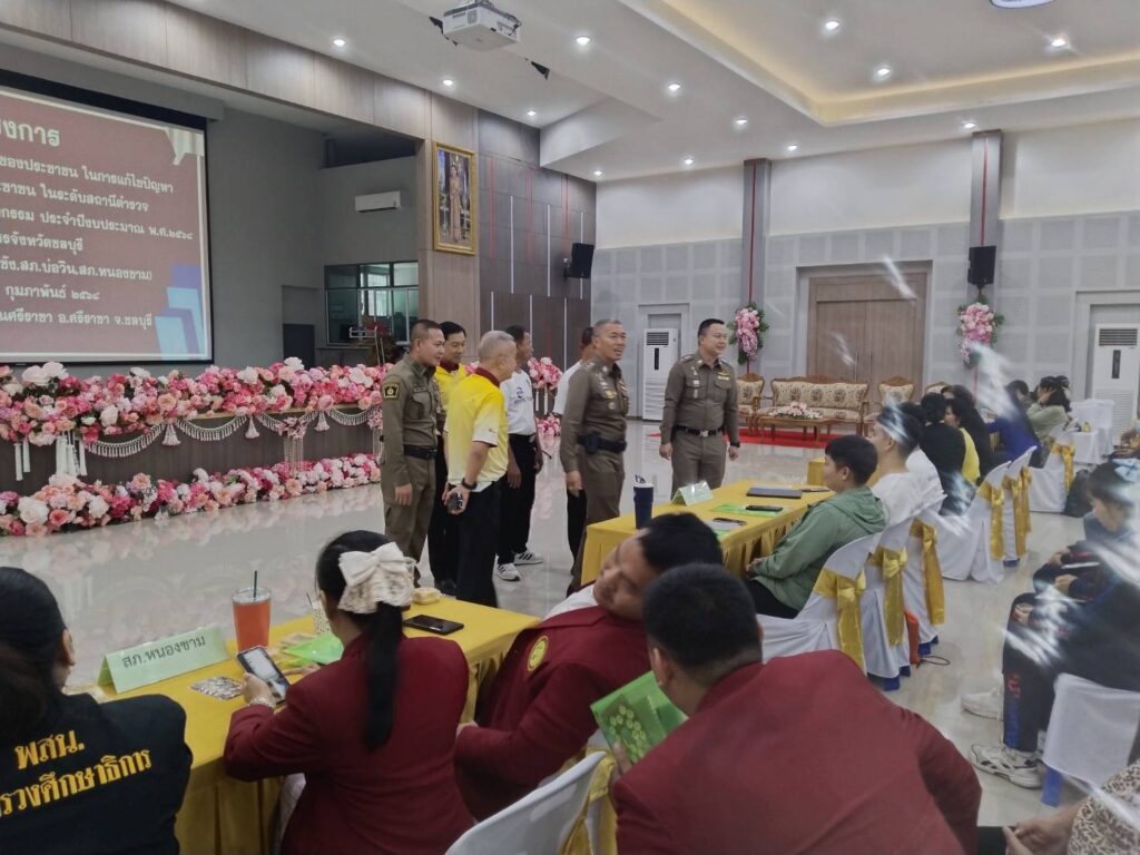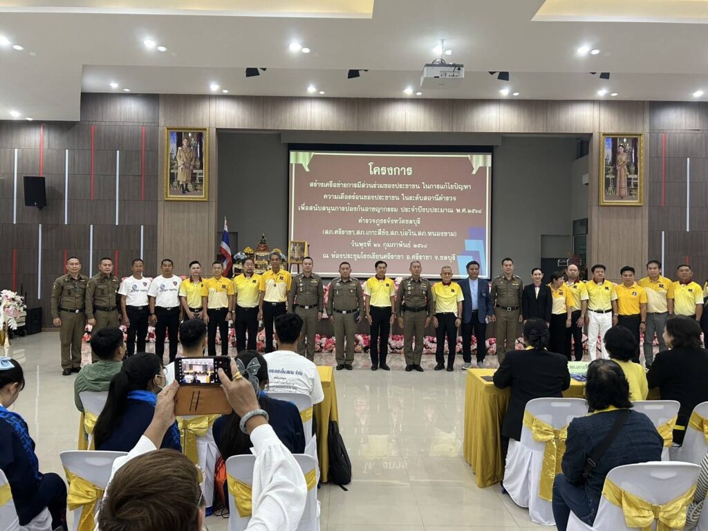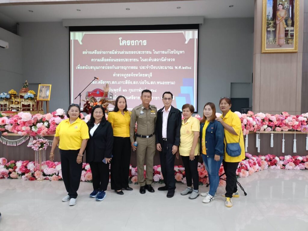 วันที่ 26 กุมภาพันธ์ 2568 ณ ห้องประชุมโรงเรียนศรีราชา อำเภอศรีราชา จังหวัดชลบุรี พันตำรวจเอก พาติกรณ์ ศรชัย รองผู้บังคับการตำรวจภูธรจังหวัดชลบุรี เป็นประธานในพิธีเปิดโครงการสร้างเครือข่ายการมีส่วนร่วมของประชาชนในการแก้ไขปัญหาความเดือดร้อนของประชาชนในระดับสถานีตำรวจเพื่อสนับสนุนการป้องกันอาชญากรรมประจำปีงบประมาณ 2568 พันตำรวจเอก สุรกิจ อินอ่ำ ผู้กำกับการสถานีตำรวจภูธรศรีราชา กล่าวรายงานถึงความเป็นมาของการจัดโครงการตามนโยบายของรัฐบาล สำนักงานตำรวจแห่งชาติและตำรวจภูธรภาค 2 ได้มีนโยบาย มุ่งเน้นในด้านการแสวงหาความร่วมมือจากหน่วยงานต่างๆและประชาชนเพื่อบูรณาการความร่วมมือทั้งภาครัฐ เอกชนและประชาชนในพื้นที่ในการร่วมกันช่วยระวังป้องกันอาชญากรรมและร่วมรับผิดชอบต่อสังคมให้ปลอดภัยต่ออาชญากรรมจึงมีแนวทางจัดทำโครงการดังกล่าวขึ้นโดยสนับสนุนงบประมาณจากสำนักงานตำรวจแห่งชาติสำหรับการอบรมตามโครงการนี้มีประชาชนที่เข้ารับการอบรมในครั้งนี้จำนวนทั้งสิ้น 1,150 คนทั้ง 11 อำเภอ 23 สถานี ตำรวจภูธรของจังหวัดชลบุรี โดยแบ่งกลุ่มจัดอบรมจำนวน 6 กลุ่มและในวันนี้ได้จัดร่วมกันจำนวน 4 สภ.ได้แก่ สภ.ศรีราชา สภ.เกาะสีชัง สภ.บ่อวินและสภ.หนองขาม ผู้เข้ารับการอบรมจำนวนทั้งสิ้น 200 คน