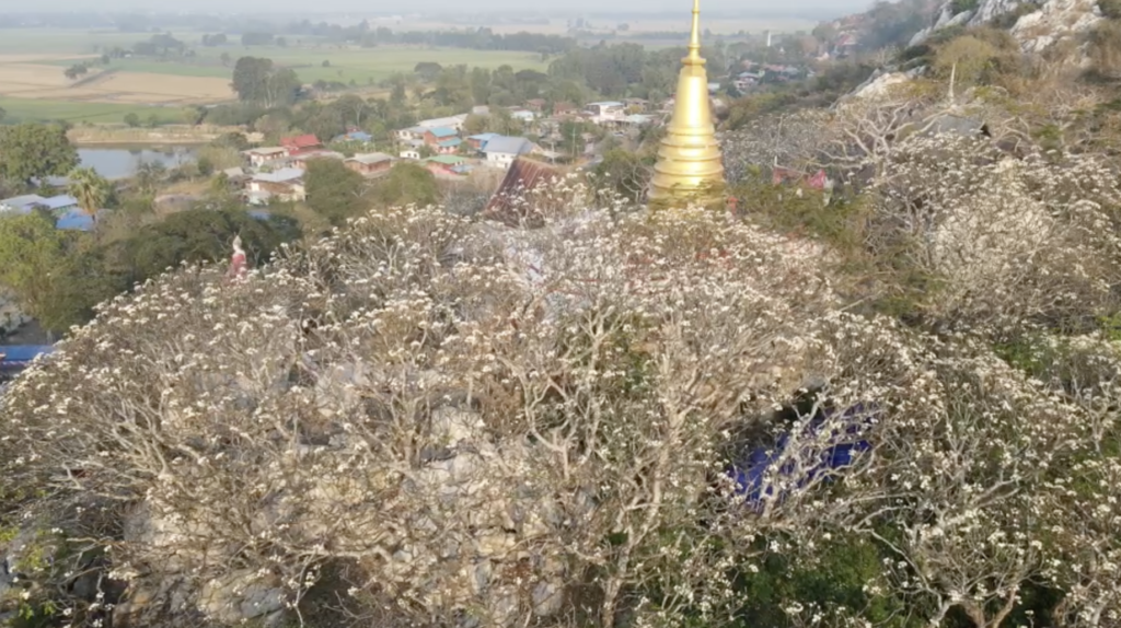 โดยดอกลีลาวดีบนเทือกเขา ที่กำลังผลิดอกอยู่นี้ เมื่อบานสะพรั่งจะเป็นภาพที่สวยงามมากมีกลิ่นหอมและมีไม่ต่ำกว่า 1 ล้านดอก ผู้ขึ้นไปเที่ยวชมจะเห็นดอกลีลาวดีที่สวยงามบานเต็มยอดเขา ซึ่งมาที่นี้แล้วยังจะได้ไหว้พระชมความสวยงามของโบราณสถานทั้งโบสถเก่าอายุ100ปีและวิหาร นอกจากนี้ยังสามารถร่วมทำบุญเลี้ยงอาหารให้เด็กกำพร้าและเด็กด้อยโอกาสที่ทางวัดอุปการะดูแลไว้กว่า350คนอีกด้วย ถือว่ามาเที่ยวแล้วยังได้ทำบุญ