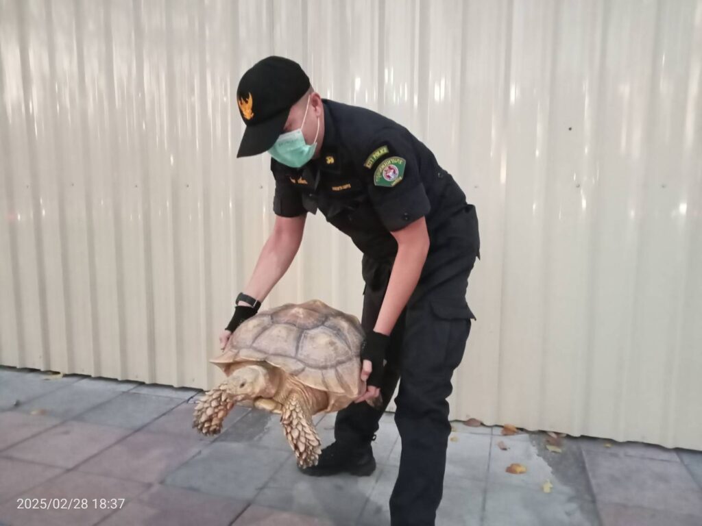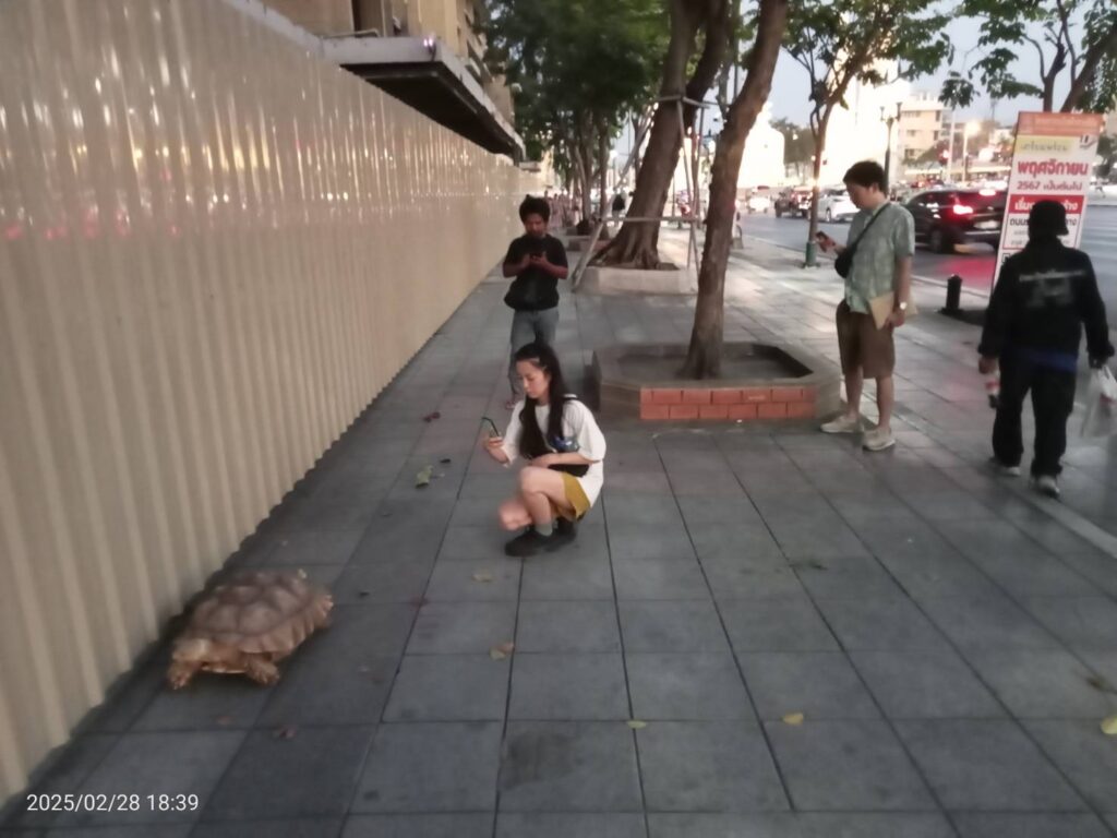 โดยต่อมาถึงทราบว่าเจ้าของเต่า ชื่อคุณโจ้ ได้พาเจ้าเต่ามาเดินเล่นออกกำลังช่วงเย็น