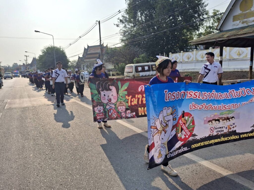 นายกิตติคุณ แย้งจันทร์ ผู้อำนวยการโรงเรียนชุมชนวัดบรมธาตุพร้อมด้วย คณะครู นักเรียน จัดขบวนเดินณรงค์ต่อต้านยาเสพติด ในโครงการรณรงค์และแก้ไขปัญหา ยาเสพติด ประจำปีงบประมาณ 2568 นายเขมชาติมั่นเจ๊ก นายกเทศมนตรีเทศบาลตำบล ทุ่งยั้ง ตำบลทุ่งยั้งอำเภอลับแลจังหวัดอุตรดิตถ์ ได้มอบหมายให้นางน้ำนอง ศุภวรรณ