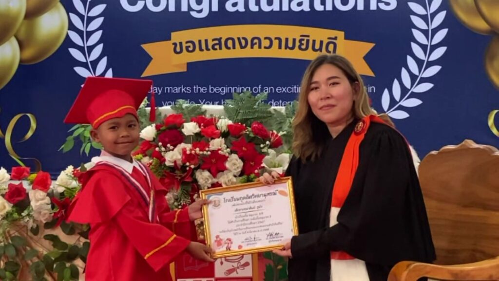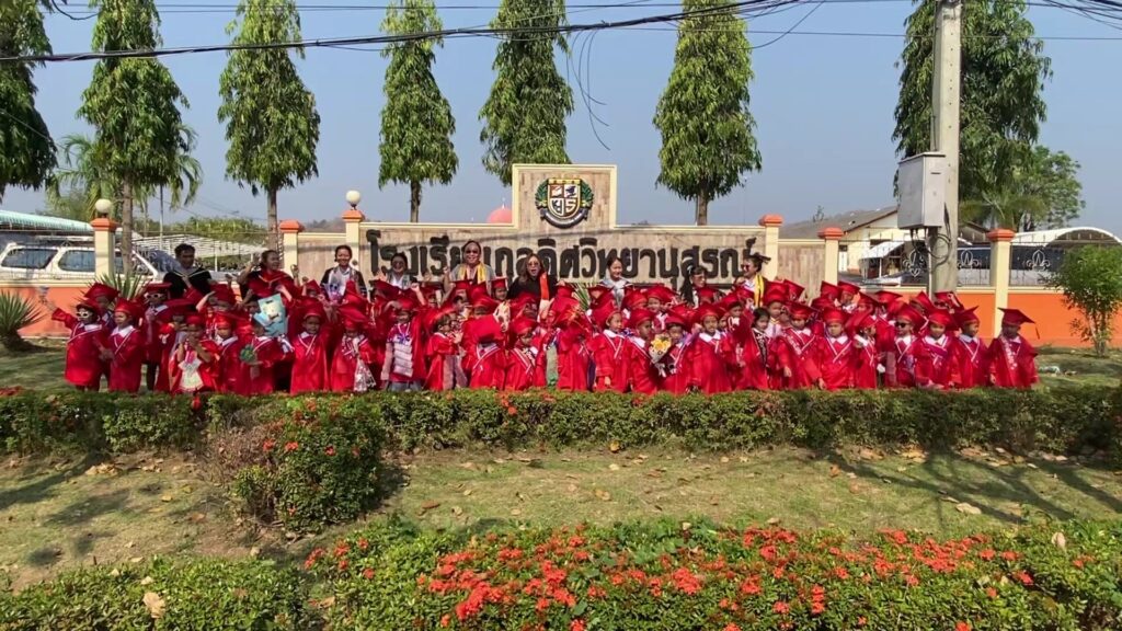 ผู้สื่อข่าวรายงานว่า ที่หอประชุมอิสระ โรงเรียนกุลดิศวิทยานุสรณ์ อำเภอหนองไผ่ จังหวัดเพชรบูรณ์ ดร.บัณฑิต ครุฑางคะ ผู้รับใบอนุญาตโรงเรียนกุลดิศวิทยานุสรณ์ และ นางวรรณวิมล ครุฑางคะ ผู้อำนวยการโรงเรียนกุลดิศวิทยานุสรณ์ ได้ร่วมแสดงความยินดีและคล้องพวงมาลัยให้แก่นักเรียน ระดับชั้น อนุบาล 3 ที่มีความมุ่งมั่น วิริยะ อุตสาหะ จนก้าวสู่บันไดความสำเร็จในก้าวแรก ภายใต้หลักสูตรของสถานศึกษาที่มุ่งพัฒนา ทั้งด้านภาษา การคำนวณและทักษะชีวิต