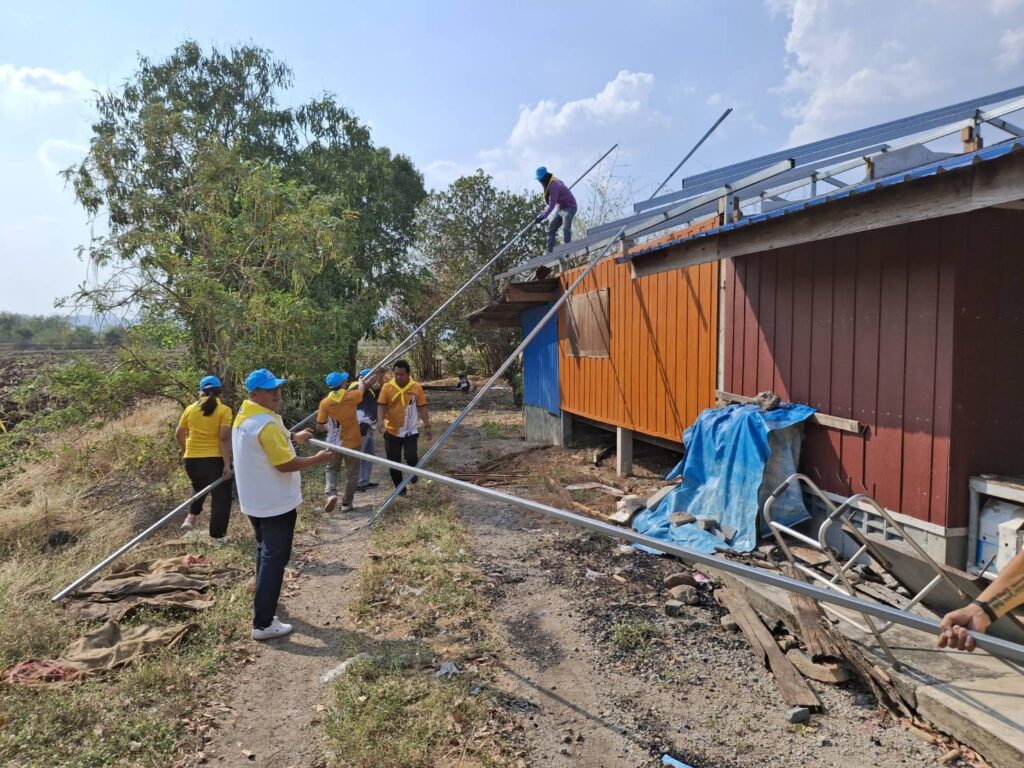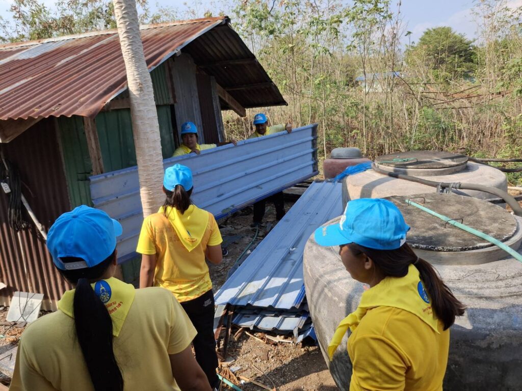 เมื่อวันที่ 5 มีนาคม พ.ศ. 2568 เวลา 09.00 น. นายบุญเลิศ เนตร์ขำ นายอำเภอชัยบาดาลในฐานะผู้อำนวยการศูนย์อำนวยการจิตอาสาพระราชทานอำเภอชัยบาดาล พร้อมด้วย นายโกมล ปานขาว ปลัดหัวหน้ากลุ่มงานบริหารงานปกครอง นำสมาชิกกองอาสารักษาดินแดนอำเภอชัยบาดาลที่ 4 ทหารศูนย์ฝึกทางยุทธวิธีกองทัพบก กำนัน ผู้ใหญ่บ้าน แพทย์ประจำตำบล สารวัตรกำนัน ผู้ช่วยผู้ใหญ่บ้าน และประชาชนจิตอาสาภัยพิบัติ ตำบลลำนารายณ์ ตำบลชัยบาดาล กว่า 40 คน ร่วมกันบำเพ็ญประโยชน์ ช่วยเหลือประชาชนที่ได้รับผลกระทบจากเหตุวาตภัย โดยร่วมกันซ่อมแซมบ้านเรือนประชาชนที่ได้รับความเสียหายเพื่อให้สามารถพักอาศัยได้ตามปกติ พร้อมทั้งตัดแต่งกิ่งไม้บริเวณที่มีต้นไม้หักโค่น ทำความสะอาด เพื่อให้เกิดความปลอดภัยเป็นระเบียบร้อย