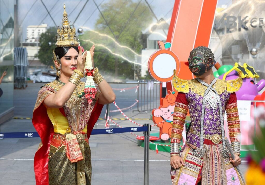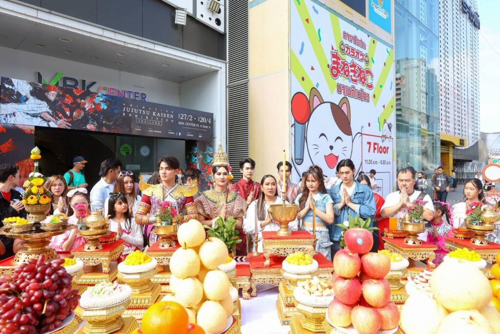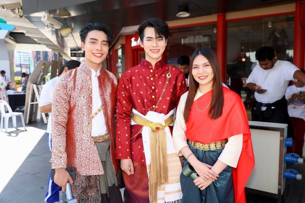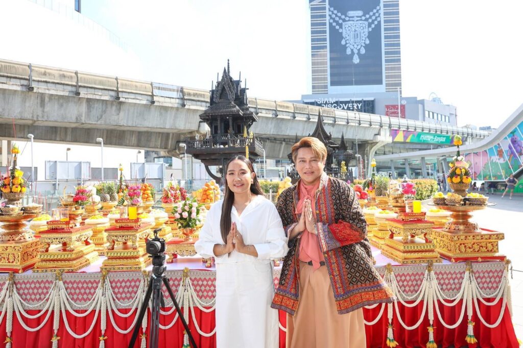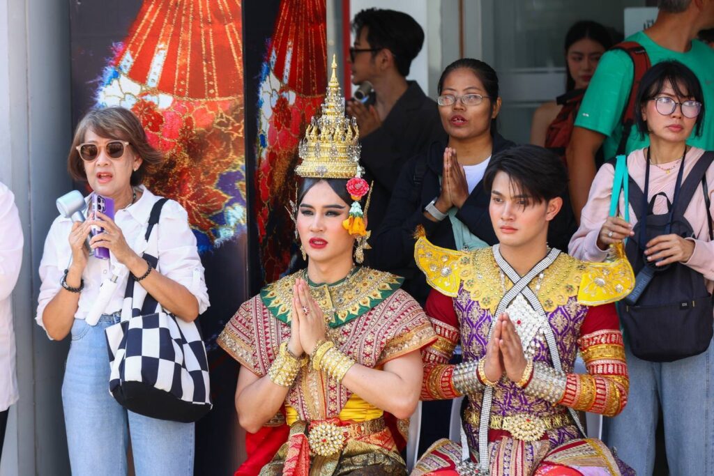บรรยากาศในพิธีบวงสรวงเต็มไปด้วยความคึกคักจากเหล่านักแสดงทั้งรุ่นใหญ่ รุ่นเด็ก รวมถึงเหล่าแฟนคลับ และสื่อมวลชนอย่างคับคั่ง ก่อนเริ่มพิธีบวงสรวงอย่างเป็นทางการ มีการแสดงโชว์จากสองหนุ่มคู่จิ้นสุดฮอต “เล้ง-แสตมป์” โชว์รำละครนอกเรื่อง “สังข์ทอง” ตอน “รจนาเลือกคู่” ซึ่งทั้งสองหนุ่มก็รำได้อย่างสวยงามสะกดจิตสะกดใจคนในงานได้เป็นอย่างดี