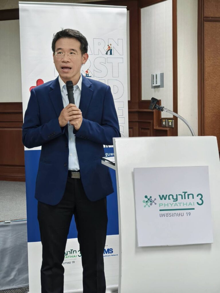 เมื่อเร็วๆนี้ โรงพยาบาลพญาไท 3 จัดอบรมการช่วยเหลือชีวิตขั้นพื้นฐาน CPR โดยได้รับเกียรติจาก นายแพทย์ อภิชัย โตวณะบุตร ผู้ช่วยผู้อำนวยการแพทย์โรงพยาบาลพญาไท3 และ พล.ต.ต.สุรเชษฐ์ บัณฑิต ผู้บังคับการตำรวจนครบาล 8 ให้เกียรติกล่าวต้อนรับ