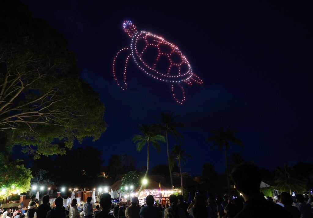 การแสดงบินโดรนในครั้งนี้จัดขึ้นเพื่อกระตุ้นการท่องเที่ยว ด้วยโดรนแปรอักษรกว่า 500 ลำ โดยได้รับความร่วมมือจากหน่วยงานส่งเสริมการท่องเที่ยวในพื้นที่ของอำเภอเกาะสมุย จ.สุราษฎร์ธานี พร้อมด้วย ทีมเยาวชนที่ได้รับการอบรมการใช้โดรนเพื่อการท่องเที่ยว จากวิทยาลัยการอาชีพเกาะสมุยและวิทยาลัยอาชีวศึกษาภาวนาโพธิคุณ อ.เกาะสมุย จ.สุราษฏร์ธานี