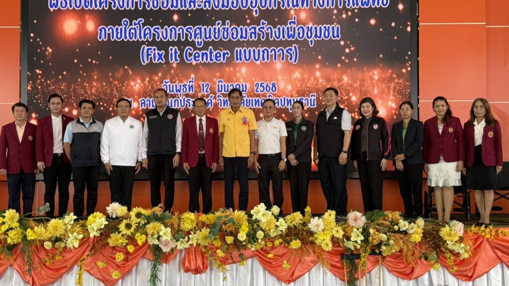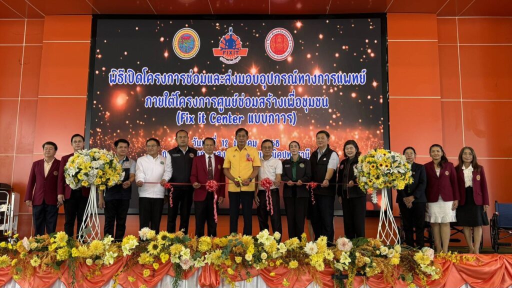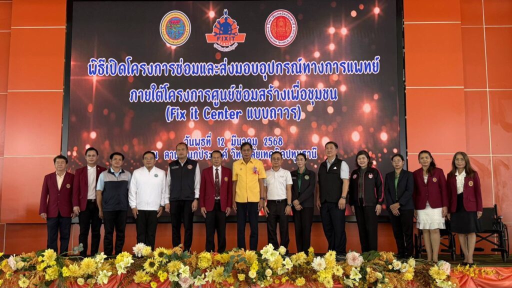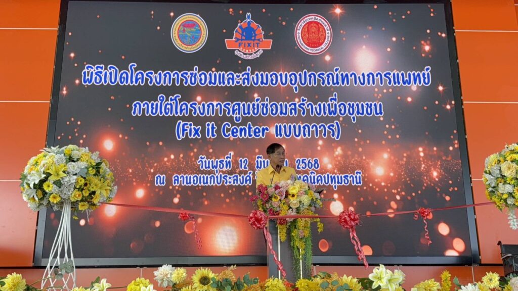 เมื่อเวลา 10.00 น. วันที่ 12 มีนาคม 2568 ที่โดมอเนกประสงค์ วิทยาลัยเทคนิคปทุมธานี หมู่ 5 ตำบลบ้านกลาง อำเภอเมือง จังหวัดปทุมธานี พล.ต.ท.คำรณวิทย์ ธูปกระจ่าง นายก อบจ.ปทุมธานี พร้อมด้วย นางสาวพัชร์ชิสา พชิระธารีรัตน์ รองนายก อบจ.ปทุมธานี ร.ต.อ. ดร.ตรีลุพธ์ ธูปกระจ่าง นายกเทศมนตรีนครรังสิต นายดำรงค์ สุดวิลัย ผู้อำนวยการวิทยาลัยเทคนิคปทุมธานี บุคลากรทางการแพทย์ ผู้แทนโรงพยาบาลส่งเสริมสุขภาพตำบล เจ้าหน้าที่พัฒนาสังคมและความมั่นคงของมนุษย์ คณะครูอาจารย์ และนักศึกษาวิทยาลัยเทคนิคปทุมธานี ได้ร่วมกัน เปิด โครงการซ่อมและส่งมอบอุปกรณ์ทางการแพทย์ภายใต้โครงการศูนย์ซ่อมสร้างเพื่อชุมชน (Fix it Center) แบบถาวร
