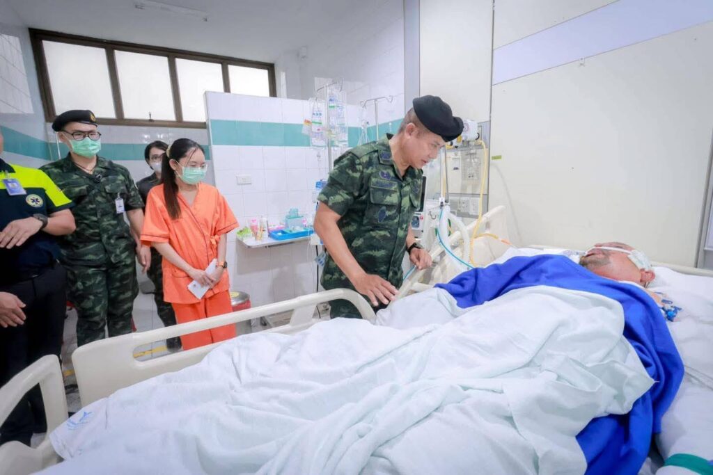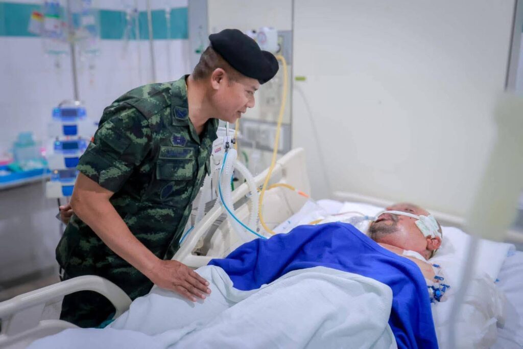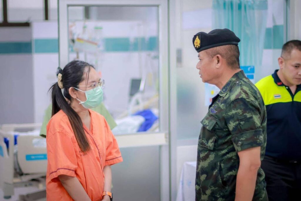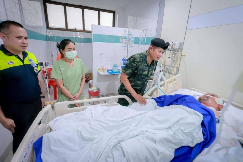 วันนี้ (12 มีนาคม 2568) เวลา 16.00 น. ที่ ตึกไฟไหม้น้ำร้อนลวก ชั้น 3 อาคารห้องผ่าตัด โรงพยาบาลยะลา พลโท ไพศาล หนูสังข์ แม่ทัพภาคที่ 4 / ผู้อำนวยการรักษาความมั่นคงภายในภาค 4 และคณะ เดินทางเยี่ยมให้กำลังใจเจ้าหน้าที่สมาชิกกองอาสารักษาดินแดนที่ได้รับบาดเจ็บจากเหตุการณ์กลุ่มผู้ก่อเหตุรุนแรง ลอบยิง – วางระเบิด หน้าที่ว่าการอำเภอสุไหงโก-ลก จังหวัดนราธิวาส ซึ่งทำการรักษาตัวอยู่ที่โรงพยาบาลยะลา 1 นาย คือ นายหมู่ใหญ่ กำธร วงค์นคร อายุ 44 ปี ตำแหน่ง ผู้บังคับหมู่รักษาความปลอดภัยที่ 1 อาการเบื้องต้นมีแผลไฟไหม้ที่บริเวณใบหน้าและแผ่นหลังรวม 30 เปอร์เซ็นของร่างกาย ขณะนี้รู้สึกตัวดี แต่ต้องใส่ท่อช่วยหายใจ เพื่อให้หายใจสะดวกขึ้น ในส่วนของอาการนั้นดีขึ้นตามลำดับ และอยู่ในความดูแลของแพทย์อย่างใกล้ชิด