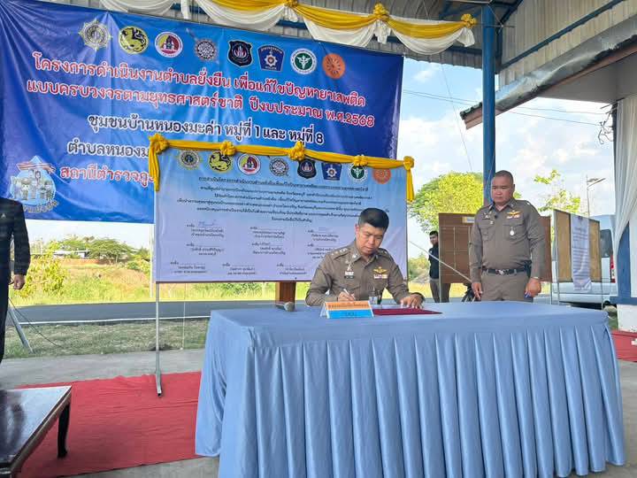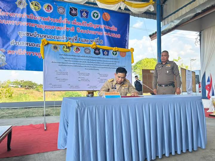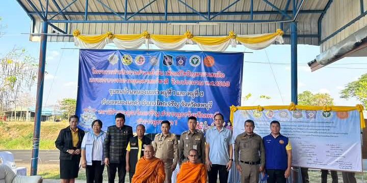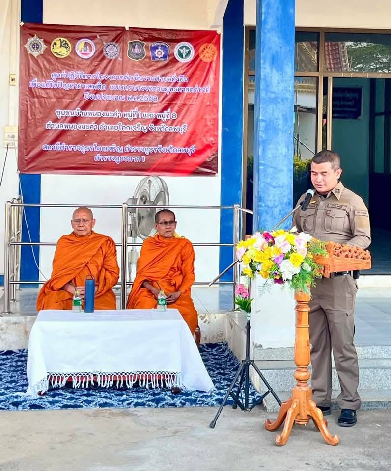 พ.ต.อ.พิภพ นาพุทรา ผกก.สภ.โคกเจริญ พร้อมด้วย พ.ต.ต.รัฐนันท์ ทำลานดี สวป.สภ.โคกเจริญ พร้อมชุดปฏิบัติการฯ สภ.โคกเจริญ ร่วมกับ นายจำรัส เงินเมือง กำนันตำบลหนองมะค่า หมู่ที่ 8 นายสุชาติ คนคง ผู้ใหญ่บ้านหมู่ที่ 1 ต.หนองมะค่า ผู้ใหญ่บ้าน ผู้ช่วยผู้ใหญ่บ้าน สารวัตรกำนัน อสม.และคณะกรรมการหมู่บ้าน จัดพิธีเปิดโครงการดำเนินงานตำบลยั่งยืน เพื่อแก้ไขปัญหายาเสพติดแบบครบวงจรตามยุทธศาสตร์ชาติ ปีงบประมาณ พ.ศ.2568 โดยมีผู้ร่วมพิธีประกอบด้วย