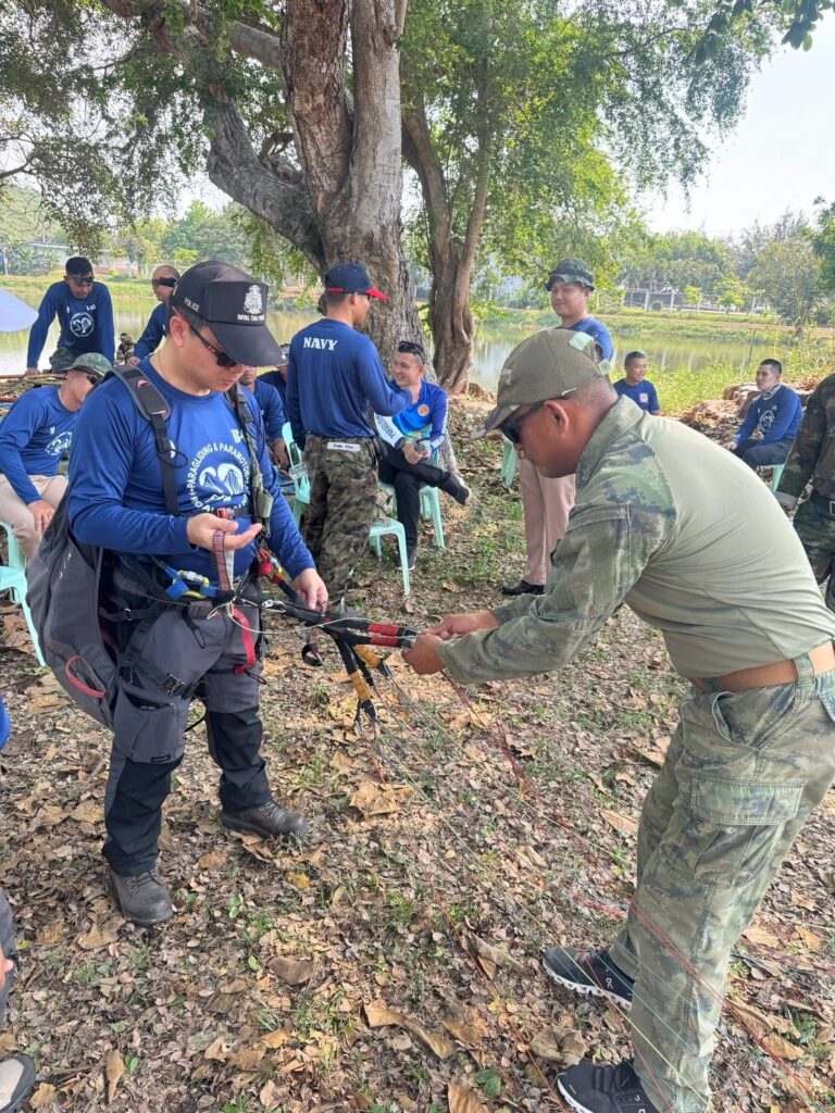 เมื่อ 10 มีนาคม 2568 ที่ผ่านมาพล.อ.ดร.ธวัชชัย ชวนสมบูรณ์ ที่ปรึกษาโครงการปริญญาเอกมหาวิทยาลัยแม่โจ้ พร้อมด้วย ดร.ฤตพล ทองดอนพุ่ม ประธานคณะทำงานหลักสูตร นำคณะนักศึกษาปริญญาเอกมหาวิทยาลัยแม่โจ้ เข้าฝึกอบรมร่มร่อนและร่มบินกองทัพเรือ ประจำปี 2568โดยมีครูฝึกจากหน่วยบัญชาการสงครามพิเศษทางเรือ กองเรือยุทธการ ร่วมให้การต้อนรับ ณ ตำบลแสมสาร อำเภอสัตหีบ จังหวัดชลบุรี โดยการฝึกครั้งนี้ เป็นโครงการนำร่องของหลักสูตร และเป็นกิจกรรมที่เกิดจากการสร้างสรรค์และออกแบบกิจกรรมของผู้เรียนตามความสมัครใจ โดยการฝึกอบรมครั้งนี้ จะทำให้ผู้เข้าอบรมเข้าใจถึงเสน่ห์ของฝึกอบรมร่มร่อนและร่มบินผู้เข้าอบรมจะได้รับอากาศที่บริสุทธิ์ สามารถบังคับทิศทางการบินได้อย่างที่ต้องการ ต่างจากการนั่งเครื่องบิน เป็นผู้บังคับอากาศยานเอง สร้างความภูมิใจที่อบรม รวมทั้งได้เห็นมุมมองที่คนอีกนับล้านไม่ได้เห็น โดยการดังกล่าวจะทดลองความเป็นไปได้ก่อนนำไปขยายผลในปีต่อไป