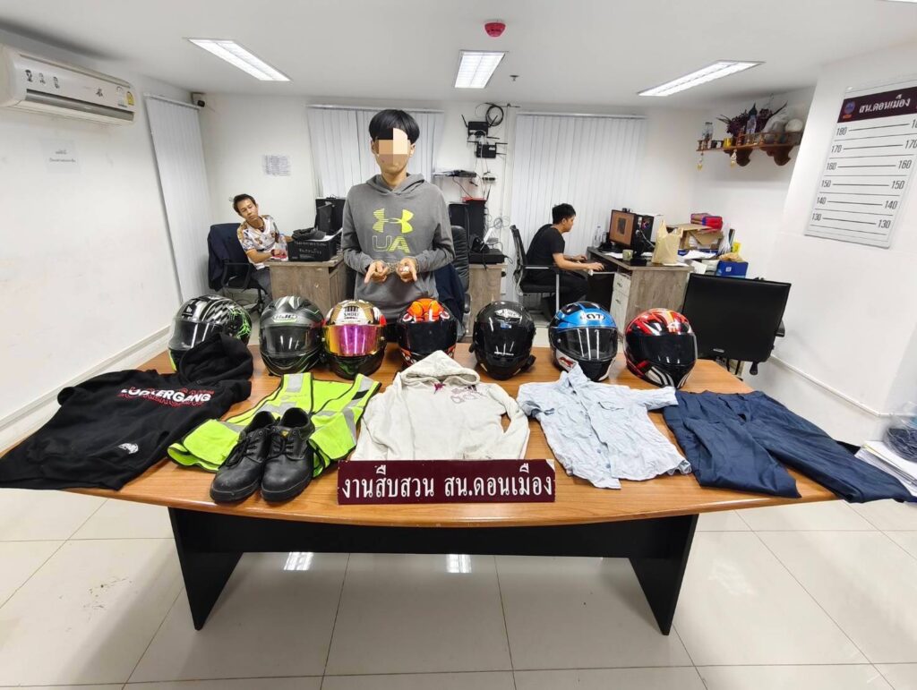 โดยนายโกสินทร์ ได้ยอมรับว่าทำงานเป็นช่างไฟฟ้าภายในท่าอากาศยานดอนเมือง มาได้ประมาณ 2 ปี ซึ่งห้องทำงานจะอยู่ใกล้กับลานจอดรถจักรยานยนต์ใต้อาคาร 1 โดยเมื่อประมาณเดือนมีนาคม 67 ได้ก่อเหตึลักทรัพย์หมวกกันน็อค บริเวณลานจอดรถอาคาร 1 ท่าอากาศยานดอนเมือง มาก่อนแล้วหลายครั้ง โดยจะขับรถวนในที่จอดรถเพื่อหาหมวกที่มียี่ห้อ เมื่อสบโอกาสก็จะวนรถมาจอดข้างๆก่อนจะหยิบดูถ้าไม่ล็อกไว้ก็จะหยิบมาเลย แต่ถ้าแค่คล้องไว้ก็จะกระชากออกมา เมื่อได้มากจะเอาเก็บที่บ้านพักย่านสายไหม เดิมทีว่าจะเอามาขาย แต่คงขายยากและอาจจะมีคนจับได้ ส่วนใหญ่จึงเก็บไว้ใส่เอง