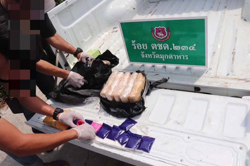 มุกดาหาร – ตชด.234 มุกดาหาร รวบนักบินพร้อมยาบ้ากว่า 60,000 หมื่นเม็ด ลักลอบนำเข้าจากประเทศเพื่อนบ้าน ที่ห้วยจรเข้ริมฝั่งแม่น้ำโขง ตำบลศรีบุญเรือง