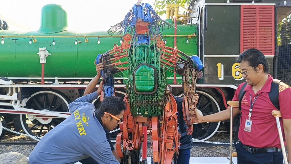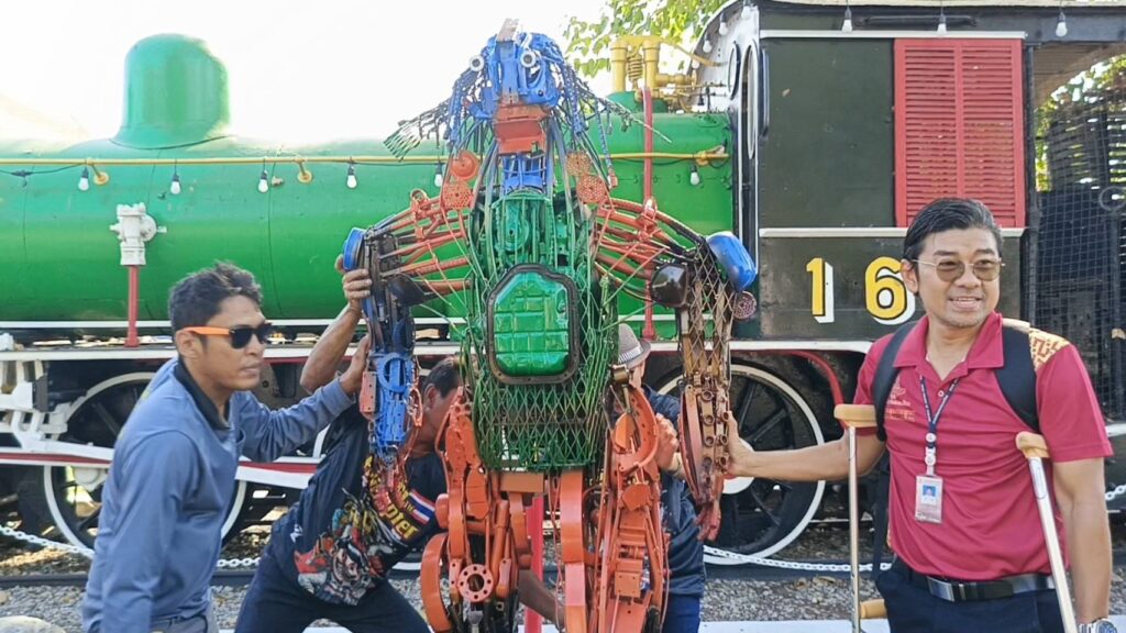 ทางสถานีรถไฟจังหวัดลพบุรี ขอขอบคุณและขอบคุณน้ำใจที่นำสิ่งประดิษฐ์ หุ่นยนต์มาตั้งโชว์ ณ บริเวณ สวนหย่อมหน้าสถานีรถไฟ หน้าหัวดกจักรไอน้ำ
