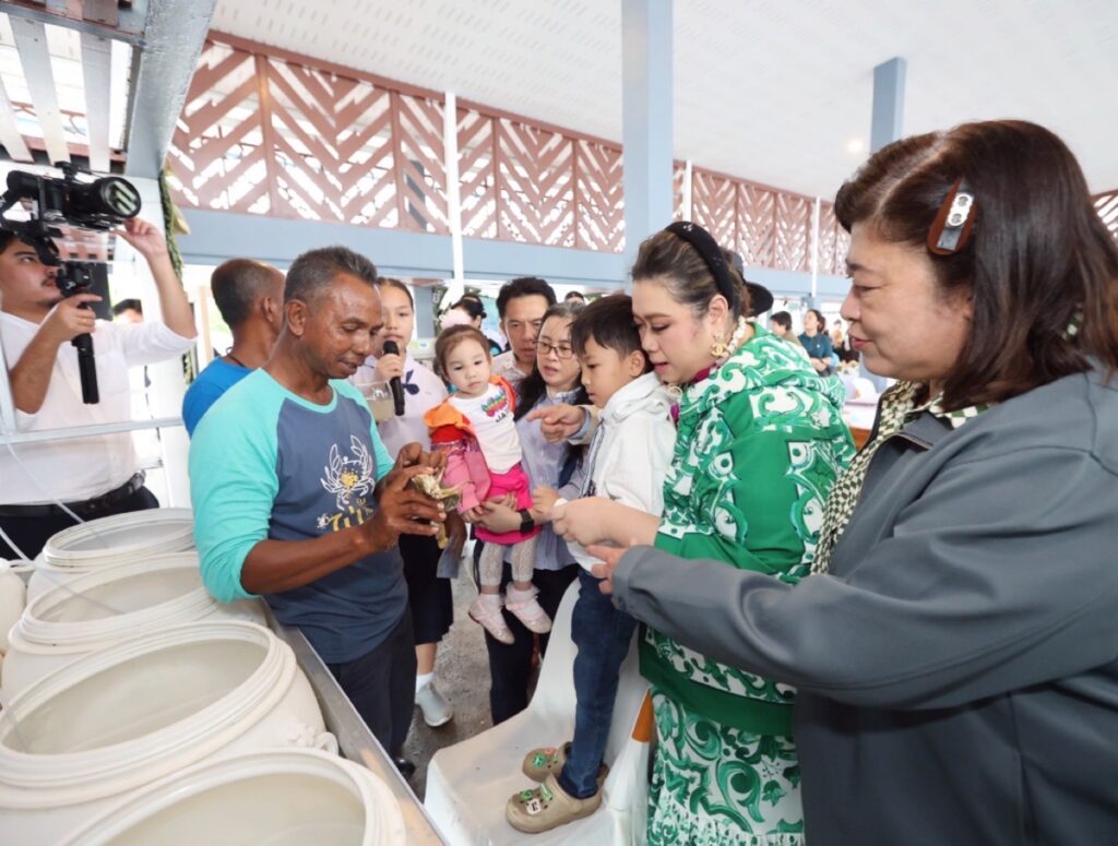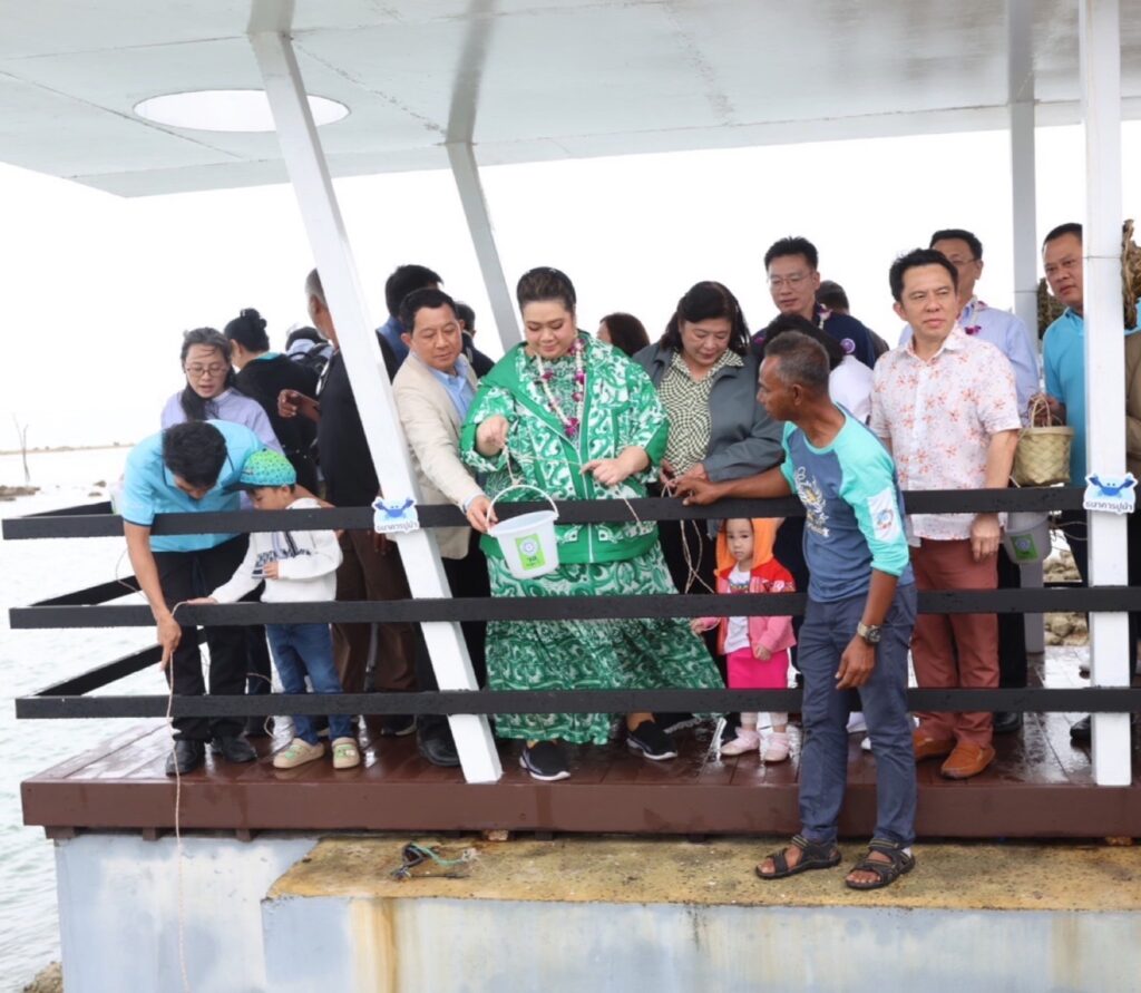 เมื่อวันที่ 9 มีนาคม 2568 ณ อ.เกาะสมุย จ.สุราษฏร์ธานี : นางสาวศุภมาส อิศรภักดี รัฐมนตรีว่าการกระทรวงการอุดมศึกษา วิทยาศาสตร์ วิจัยและนวัตกรรม นำคณะผู้บริหารระดับสูง (อว.) ประกอบด้วย ศ.ดร.ศุภชัย ปทุมนากุล ปลัดกระทรวง (อว.),ศ.นพ.สิริฤกษ์ ทรงศิวิไล ประธานกรรมการส่งเสริมวิทยาศาสตร์ วิจัยและนวัตกรรม และผู้บริหารระดับสูงของ (อว.) จากหน่วยงานราชการ รัฐวิสาหกิจ องค์การมหาชนและมหาวิทยาลัย เข้าร่วมตรวจเยี่ยมโครงการ “ธนาคารปูม้า : เครื่องมือการบริหารจัดการทรัพยากรชายฝั่งเพื่อใช้ประโยชน์อย่างยั่งยืน” ภายใต้โครงการขยายผลธนาคารปูม้าเพื่อ “คืนปูม้าสู่ทะเลไทย” ซึ่งมหาวิทยาลัยวลัยลักษณ์ได้รับการสนับสนุนการวิจัยและนวัตกรรมจาก (วช.) ในการดำเนินงาน ณ ธนาคารปูม้าชุมชนอิสลามหัวถนน อ.เกาะสมุย จ.สุราษฏร์ธานี