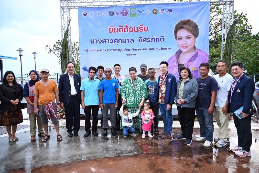 นางสาวศุภมาส อิศรภักดี รมว.อว. กล่าวว่า จากการตรวจเยี่ยมโครงการธนาคารปูม้าในครั้งนี้ ได้เห็นความก้าวหน้าและความสำคัญในการส่งเสริมและถ่ายทอดความรู้เทคโนโลยีและนวัตกรรมแก่เกษตรกรและชาวประมงเกี่ยวกับการดำเนินการธนาคารปูม้า โดยเฉพาะในด้านการเพิ่มผลผลิตและการอนุรักษ์ทรัพยากรทางทะเล โครงการนี้มีศักยภาพในการขยายผลในอนาคต หากสามารถส่งเสริมให้ชุมชนประมงทุกแห่งเข้าถึงความรู้และเทคโนโลยี สามารถขยายไปถึงการเพาะเลี้ยงและอนุรักษ์สัตว์ทะเลอื่นๆ ที่มีความสำคัญต่อระบบนิเวศและเศรษฐกิจของท้องถิ่น ซึ่งจะช่วยเสริมสร้างความยั่งยืนในการใช้ประโยชน์จากทรัพยากรธรรมชาติ และกระตุ้นการพัฒนาเศรษฐกิจในระดับชุมชนและประเทศได้อย่างมีประสิทธิภาพ