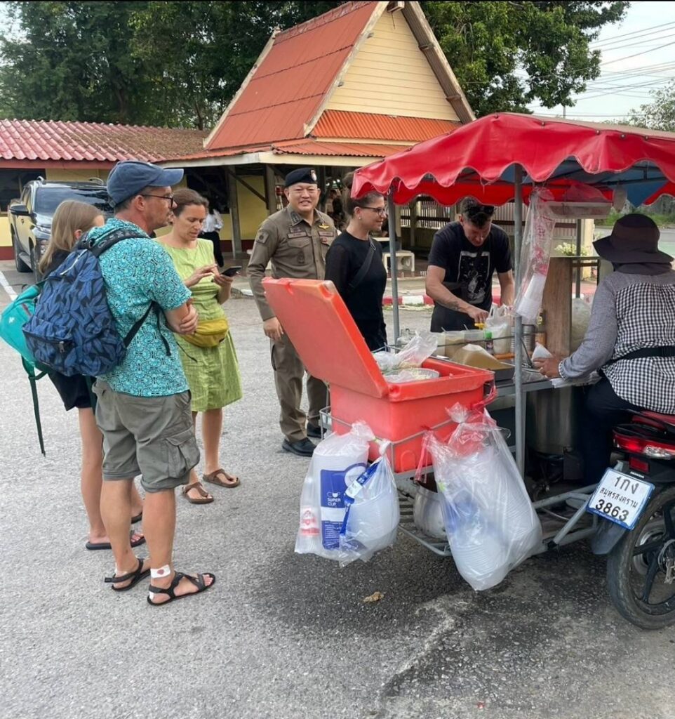 ในระหว่างรอได้จัดก๊วยเตี๋ยวไก่พร้อมนำดื่มบริการ ได้รับคำชมว่า thai noodle อร่อยดี ปรากฏว่า มีชาวต่างชาติ (เยอรมัน) บาดเจ็บด้วย ทาง พ.ต.อ.ธิป เข่งคุ้ม ผกก.สภ.เขาย้อย จึงได้เหมาก๋วยเตี๋ยว ให้ผู้โดยสารคนไทยและชาวต่างชาติได้ทานกันอย่างเอร็ดอร่อย ”ผบช.ภ.7 กล่าว“