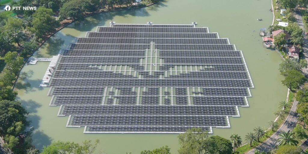 โดย ปตท. ได้ออกแบบและติดตั้งระบบโซลาร์บนทุ่นลอยน้ำ ขนาดกำลังการผลิต 999.44 กิโลวัตต์ ในพื้นที่สระน้ำของสวนสุขภาพกองทัพอากาศ ซึ่งคาดว่าจะช่วยลดการปล่อยก๊าซคาร์บอนไดออกไซด์ได้ราว 19,000 ตันคาร์บอนไดออกไซด์เทียบเท่า และจะช่วยประหยัดพลังงานไฟฟ้าได้ประมาณ 1.08 ล้านบาทต่อปี หรือประมาณ 25.7 ล้านบาท ตลอดอายุโครงการ 25 ปี อีกทั้งยังมีการติดตั้งระบบติดตามและตรวจสอบการผลิตไฟฟ้าแบบ Real time