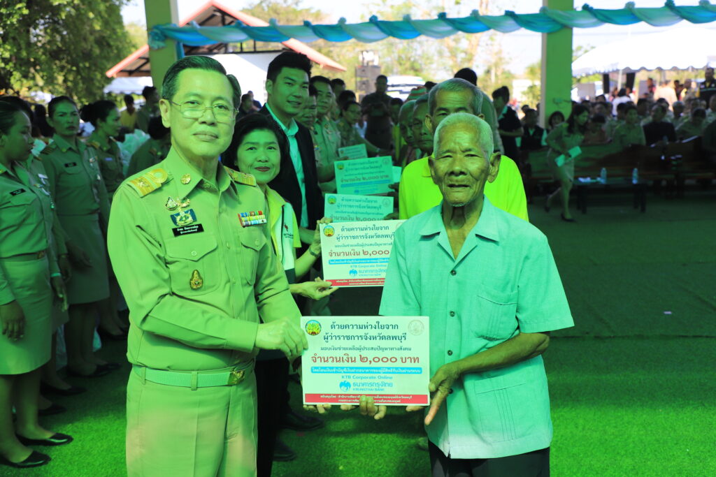 ในการนี้ ผู้ว่าราชการจังหวัดลพบุรี สมาชิกสภาผู้แทนราษฎรจังหวัดลพบุรี และหัวหน้าส่วนราชการ ได้ร่วมกันมอบเงินกองทุนพัฒนาเด็กชนบทในพระราชูปถัมป์สมเด็จพระเทพรัตนราชสุดาฯ สยามบรมราชกุมารีในการอุปการะเด็กชนบท การมอบเงินสงเคราะห์ (พมจ.) ถุงยังชีพแก่ผู้ประสบปัญหาทางสังคม (กาชาด) จากนั้นได้เยี่ยมชมกิจกรรมการให้บริการประชาชนของส่วนราชการต่าง ๆ อาทิ การมอบแว่นสายตาผู้สูงอายุและผู้ยากไร้ การรับบริจาคโลหิต จากโรงพยาบาลพระนารายณ์มหาราช การออกหน่วยแพทย์เคลื่อนที่จากโรงพยาบาลชัยบาดาล กิจกรรมทอดผ้าป่ากองทุนแม่ของแผ่นดิน การให้ความรู้ด้านกฎหมาย การออกบูธนิทรรศการและเปิดรับสมัครเข้าร่วมโครงการสังฆประชานุเคราะห์ “หนึ่งร้อย ร้อยดวงใจ” ของคณะสงฆ์จังหวัดลพบุรี การตัดผมฟรี การทำหมันสุนัขและแมว การจำหน่ายสินค้าอุปโภคบริโภคราคาประหยัด และบริการอื่น ๆ ให้ประชาชนในพื้นที่ อีกมากมายจากส่วนราชการของจังหวัด ซึ่งเป็นการพบปะระหว่างผู้บริหารของจังหวัดกับประชาชนในพื้นที่ห่างไกล ในการบำบัดทุกข์ บำรุงสุข สร้างรอยยิ้มให้ประชาชนอีกด้วย