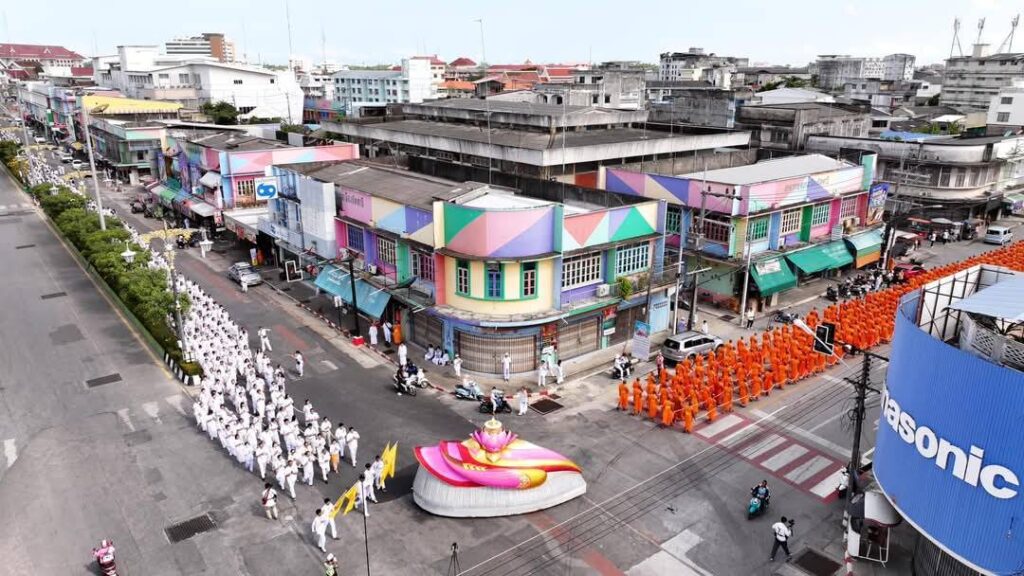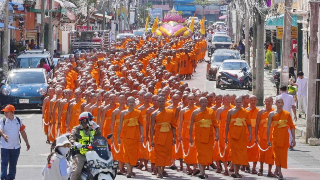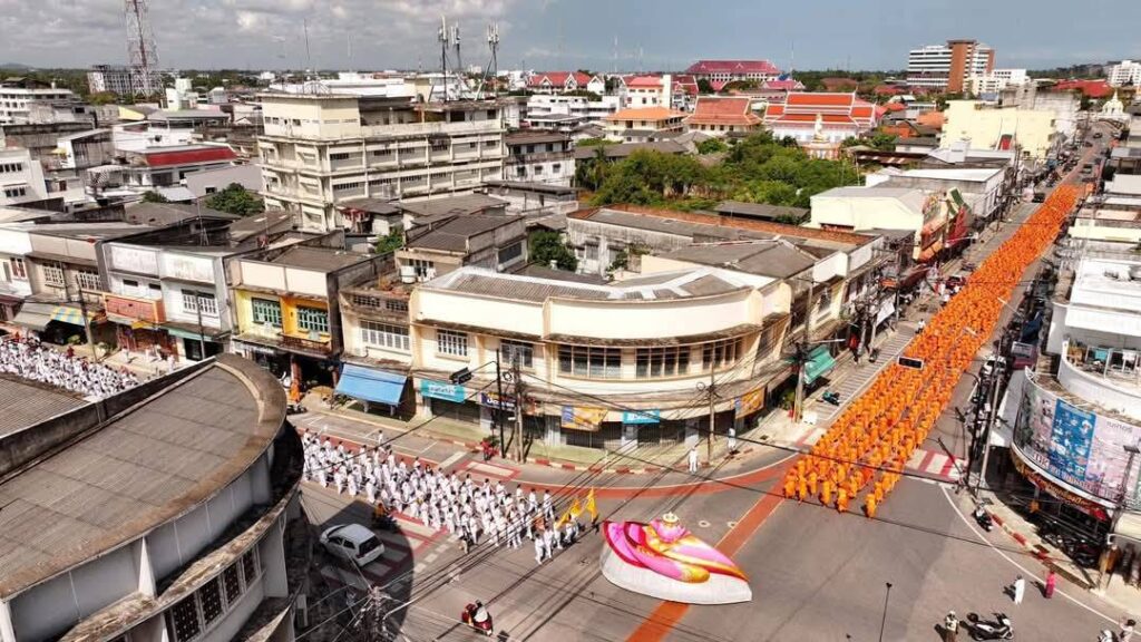 โดยบรรยากาศภายในพิธีฯ คณะสงฆ์ พร้อมด้วยพุทธศาสนิกชนจังหวัดปัตตานีและจังหวัดใกล้เคียง อัญเชิญพระบรมสารีริกธาตุ รอบเมืองปัตตานี โดยมีจุดเริ่มต้น ณ วัดนพวงศาราม สิ้นสุดขบวนอัญเชิญ ฯ ณ ลานวัฒนธรรมปัตตานี ต่อด้วยพิธีทอดผ้าป่า พิธีอัญเชิญพระบรมสารีริกธาตุ ประดิษฐาน ปทุมเจดีย์ “เจดีย์พระพุทธเจ้า 5 พระองค์” และพิธีจุดประทีปถวายเป็นพุทธบูชา กว่า 10,000 ดวง มีพุทธศาสนิกชนร่วมพิธีจำนวนมาก