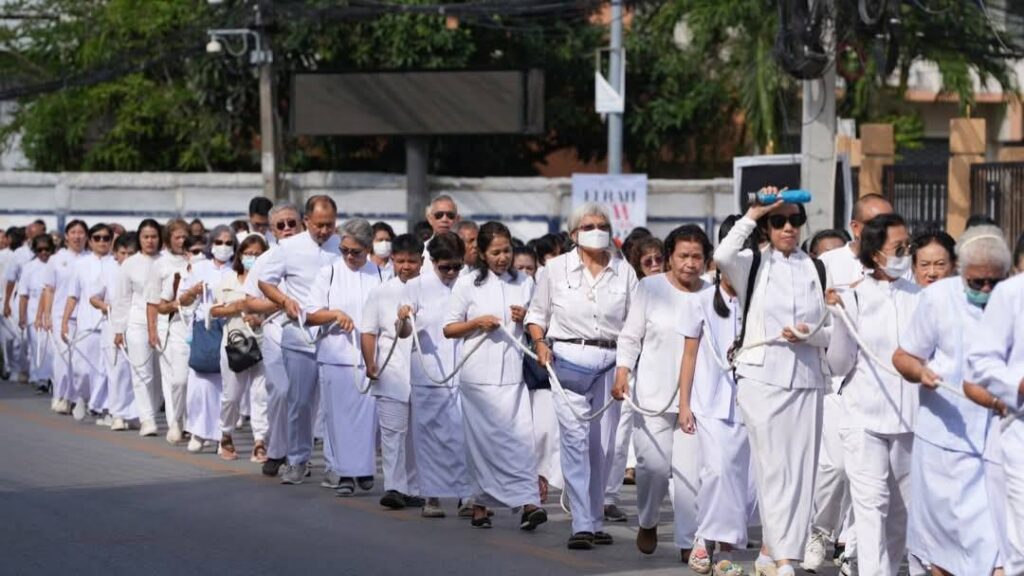 วันที่ 16 มีนาคม 2568 พระครูสมุห์สนิทวงศ์ วุฑฺฒิวํโส, ดร. ผู้อำนวยการสำนักสื่อสาร วัดพระธรรมกาย จังหวัดปทุมธานี ได้กล่าวถึง พุทธศาสนิกชนร่วมอานิสงส์ใหญ่ ในพิธีอัญเชิญพระบรมสารีริกธาตุ รอบเมืองปัตตานี เพื่อประดิษฐานปทุมเจดีย์ “เจดีย์พระพุทธเจ้า 5 พระองค์” ณ ศูนย์อบรมเยาวชนปัตตานี อำเภอหนองจิก จังหวัดปัตตานี