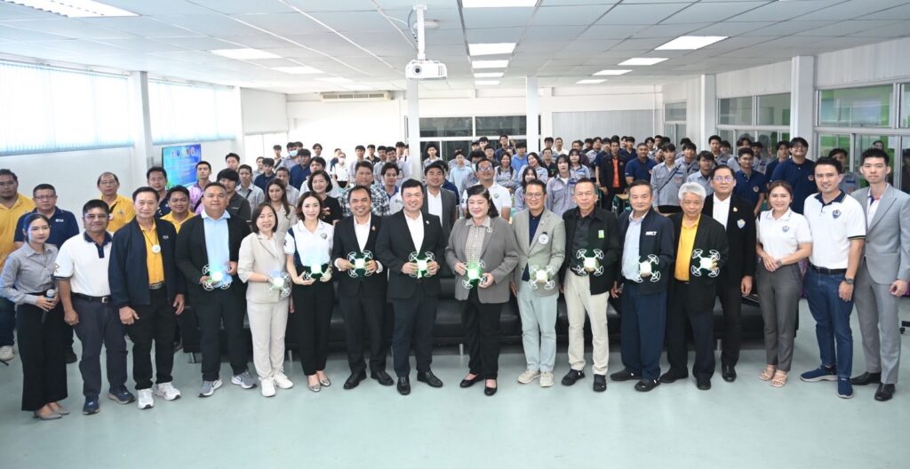 เมื่อวันที่ 13 มีนาคม 2568 สำนักงานการวิจัยแห่งชาติ (วช.) กระทรวงการอุดมศึกษา วิทยาศาสตร์ วิจัยและนวัตกรรม (อว.) ร่วมกับ หอการค้าจังหวัดระยอง,วิทยาลัยเทคนิคระยอง และสมาคมกีฬาเครื่องบินจำลองและวิทยุบังคับ จัดการอบรมเชิงปฏิบัติการในหัวข้อ “การประยุกต์ใช้เทคโนโลยีและนวัตกรรมโดรนเพื่อส่งเสริมการท่องเที่ยว ภาคตะวันออก ครั้งที่ 1” โดยมี ดร.วิภารัตน์ ดีอ่อง ผู้อำนวยการสำนักงานการวิจัยแห่งชาติ (ผอ.วช.) เป็นประธานในพิธี พร้อมนี้ นายกิตติพงค์ อุตตมะเวทิน ผู้อำนวยการวิทยาลัยเทคนิคระยอง,นายทินกร ลาวัณย์เสถียร ประธานหอการค้าจังหวัดระยอง กล่าวต้อนรับ และ นายพิศิษย์ มิตรเกื้อกูล นายกสมาคมกีฬาเครื่องบินจำลองและวิทยุบังคับ กล่าวรายงาน พร้อมด้วยคณะผู้บริหาร สื่อมวลชน และผู้เข้าร่วมอบรม ณ วิทยาลัยเทคนิคระยอง จังหวัดระยอง