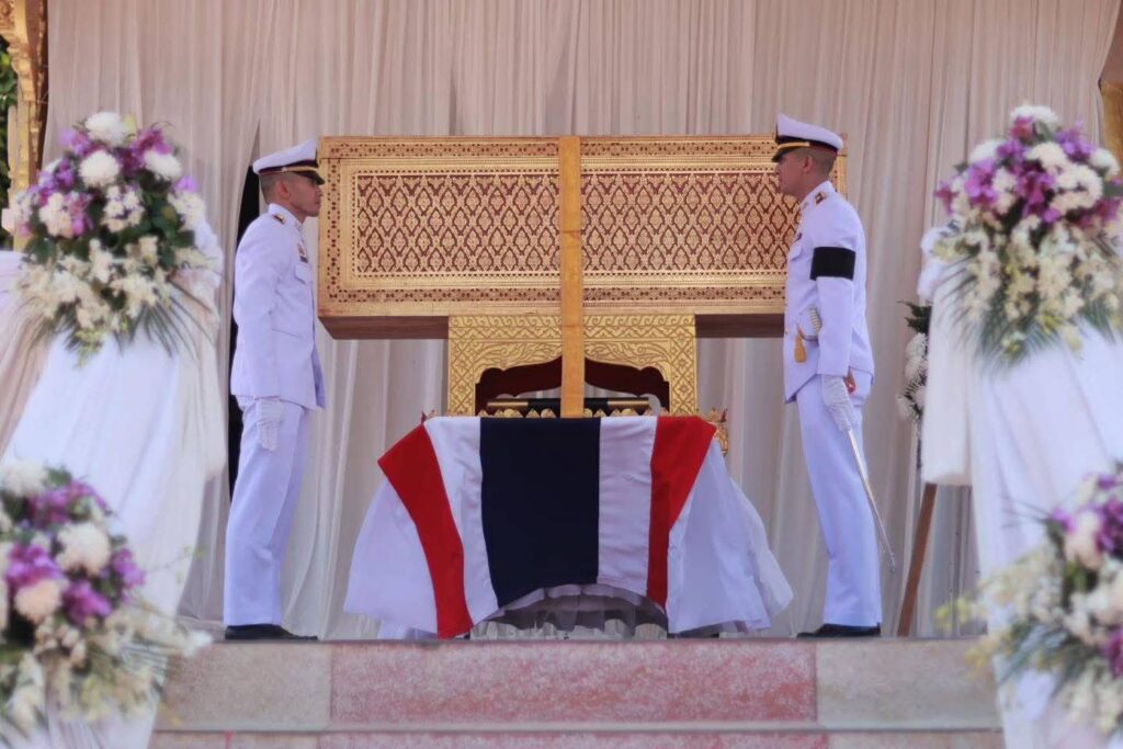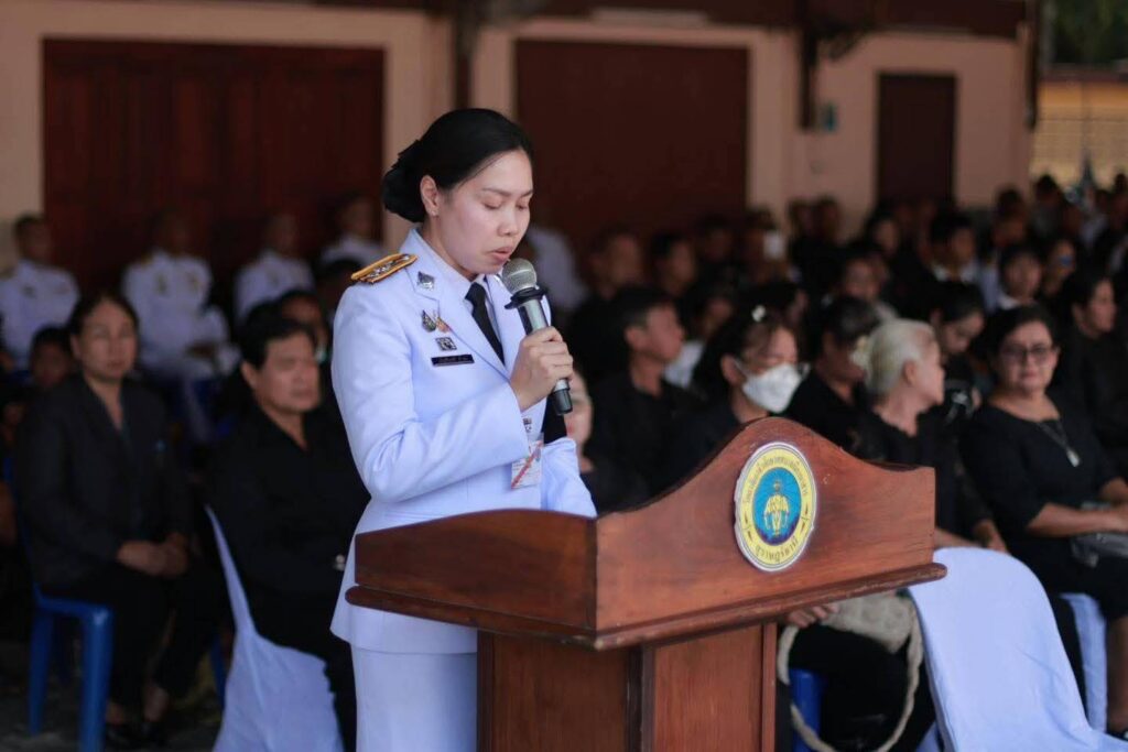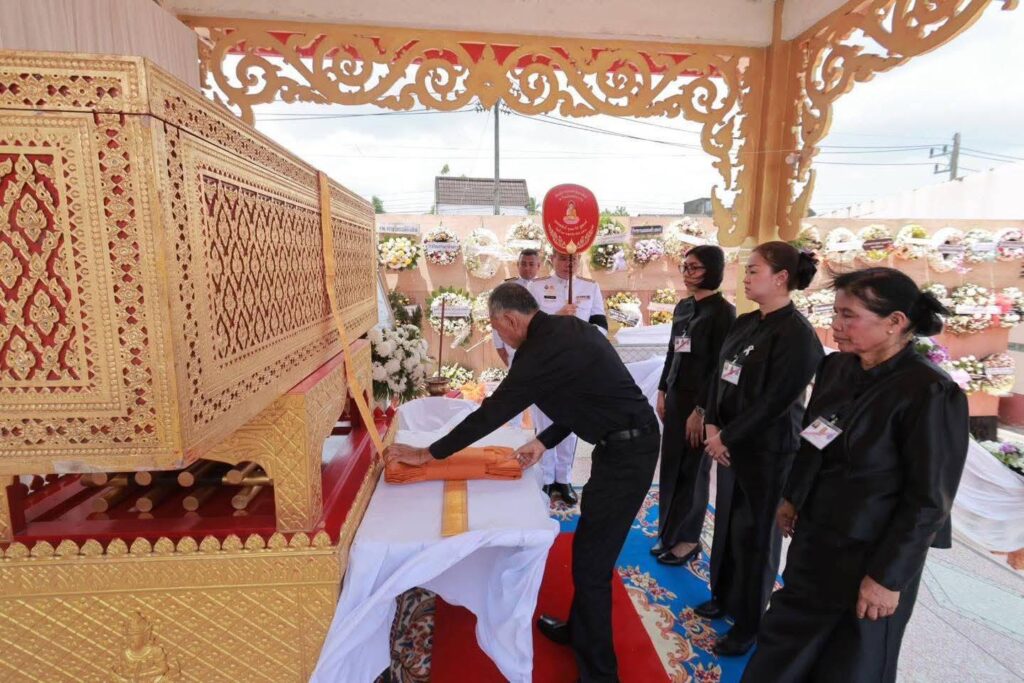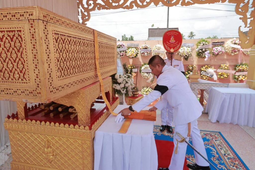 วันนี้ (17 มี.ค.68) เวลา 15.00 น. ที่ วัดอภัยเขตตาราม อำเภอบ้านนาสาร จังหวัดสุราษฎร์ธานี พระบาทสมเด็จพระเจ้าอยู่หัว ทรงพระกรุณาโปรดเกล้าฯ ให้ พลเอก พระวรวงศ์เธอ พระองค์เฉลิมศึกยุคล เสด็จแทนพระองค์ ในการพระราชทานเพลิงศพ ร้อยโท ภูวิวัฒน์ คำสง โดยมี พลโท ไพศาล หนูสังข์ แม่ทัพภาคที่ 4,นายธีรุตม์ ศุภวิบูลย์ผล ผู้ว่าราชการจังหวัดสุราษฎร์ธานี พร้อมด้วยหัวหน้าส่วนข้าราชการ ทหาร ตำรวจ ญาติพี่น้องและประชาชนเข้าเฝ้ารับเด็จ