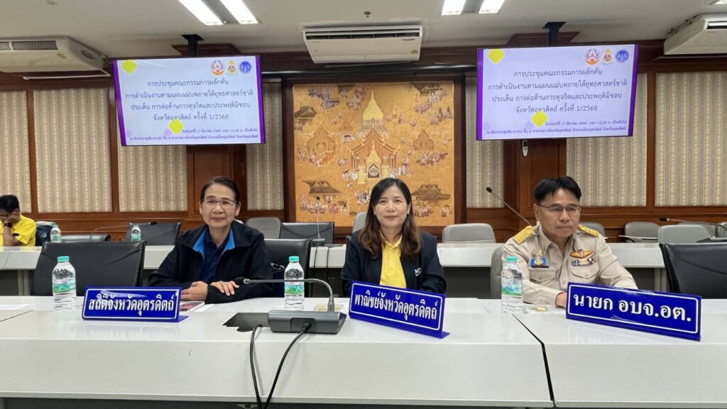 เมื่อวันจันทร์ที่ 17 มีนาคม 2568 นางสาววิชญา นพชินวงศ์ ผู้อำนวยการสำนักงาน ป.ป.ช. ประจำจังหวัดอุตรดิตถ์ พร้อมด้วยเจ้าหน้าที่กลุ่มงานป้องกันการทุจริต ร่วมกับจังหวัดอุตรดิตถ์ และสำนักงาน ปปท.เขต 6 จัดประชุมคณะกรรมการผลักดันการดำเนินงานตามแผนแม่บทภายใต้ยุทธศาสตร์ชาติ ประเด็น การต่อต้านการทุจริตและประพฤติมิชอบ จังหวัดอุตรดิตถ์ ครั้งที่ 1/2568 โดยมี นายศิริวัฒน์ บุปผาเจริญ ผู้ว่าราชการจังหวัดอุตรดิตถ์ เป็นประธานฯ ณ ห้องประชุมศิลาอาสน์ ชั้น 5 ศาลากลางจังหวัดอุตรดิตถ์
