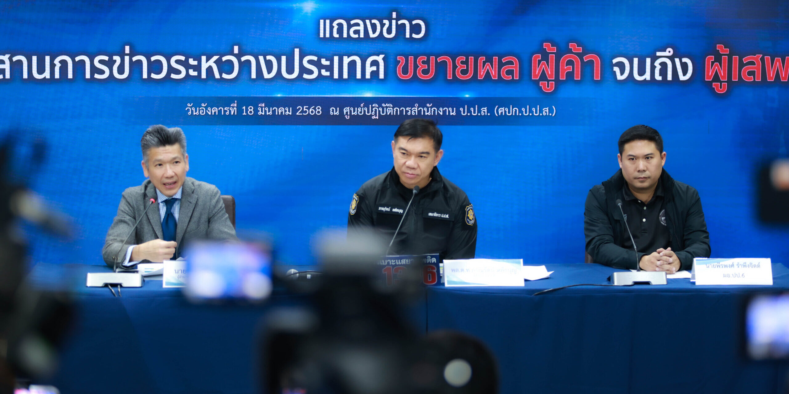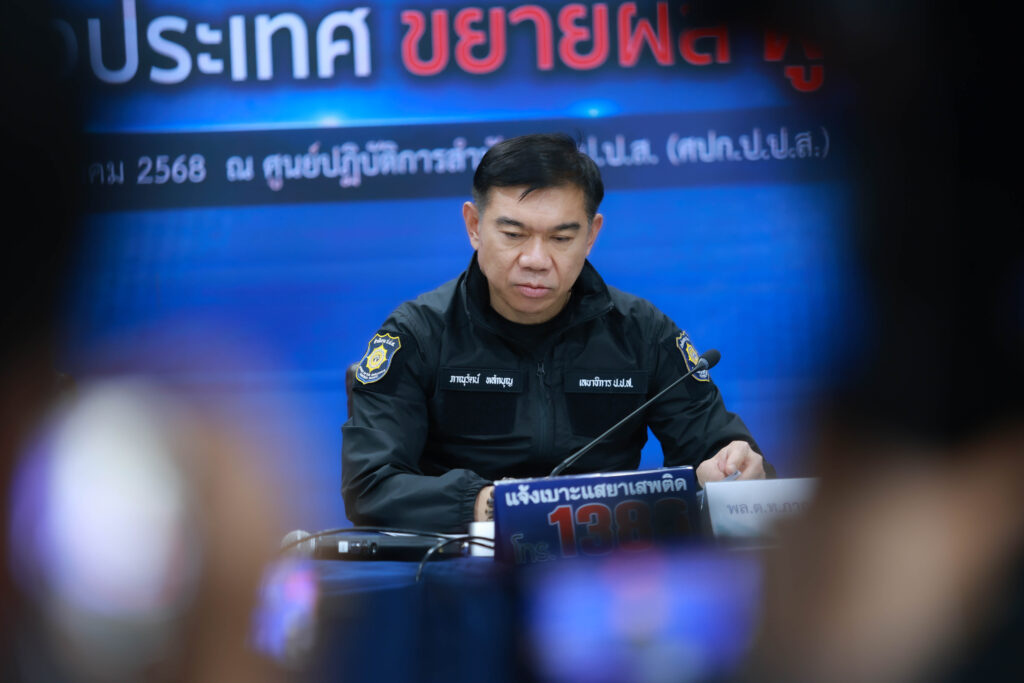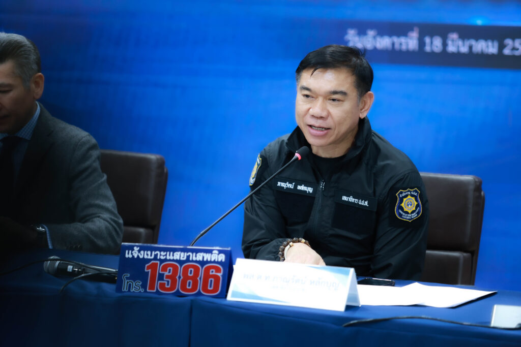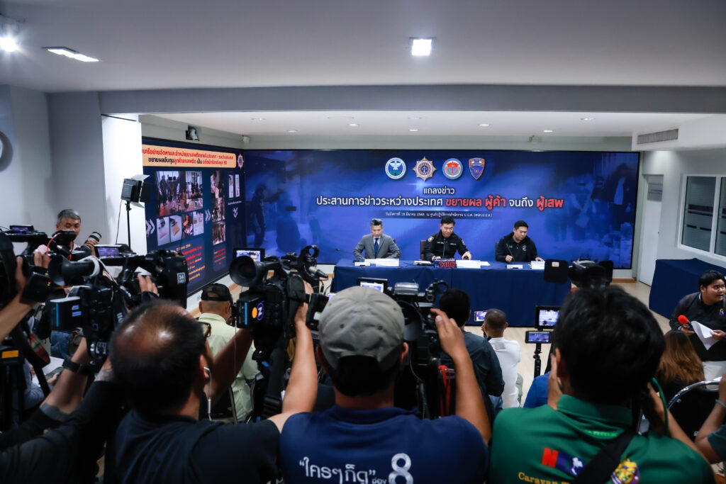 เมื่อวันที่ 18 มีนาคม 2568 พลตำรวจโท ภาณุรัตน์ หลักบุญ เลขาธิการ ป.ป.ส. พร้อมด้วย นายปฤณ เมฆานันท์ ผู้อำนวยการสำนักปราบปรามยาเสพติด สำนักงาน ป.ป.ส. แถลงข่าวผลการจับกุมเครือข่ายยาเสพติดระหว่างประเทศ 2 คดีสำคัญ โดยความร่วมมือจาก คณะกรรมาธิการควบคุมยาเสพติดแห่งชาติ สาธารณรัฐประชาชนจีน (NNCC),กรมตำรวจต่อสู้ยาเสพติด กระทรวงความมั่นคงสาธารณะ สาธารณรัฐสังคมนิยมเวียดนาม (CND) และสำนักงานตรวจคนเข้าเมือง