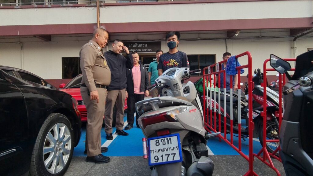 พร้อมของกลางรถจยย.ฮอนด้า ลีด สีขาว-น้ำตาล ทะเบียน 8 ขท 0177 กรุงเทพมหานคร