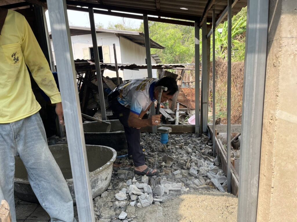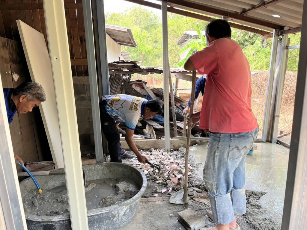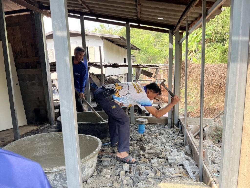 ได้นำทีมงานกองช่างอบต. หนองทรายขาว ลงพื้นที่บ้านของนางแหวน พันธุ์บุตร บ้านเลขที่ 106 หมู่ที่ 6 บ้านเนินยาว ต.หนองทรายขาว ดำเนินการซ่อมแซมบ้านพักอาศัยผู้ที่มีรายได้น้อยประจำปี 2568 บ้านพอเพียง จังหวัดลพบุรี “โครงการสวัสดิการชุมชนจังหวัดลพบุรี ” สภาชุมชนตำบลหนองทรายขาว ทำการปรับพื้นและเทพื้น