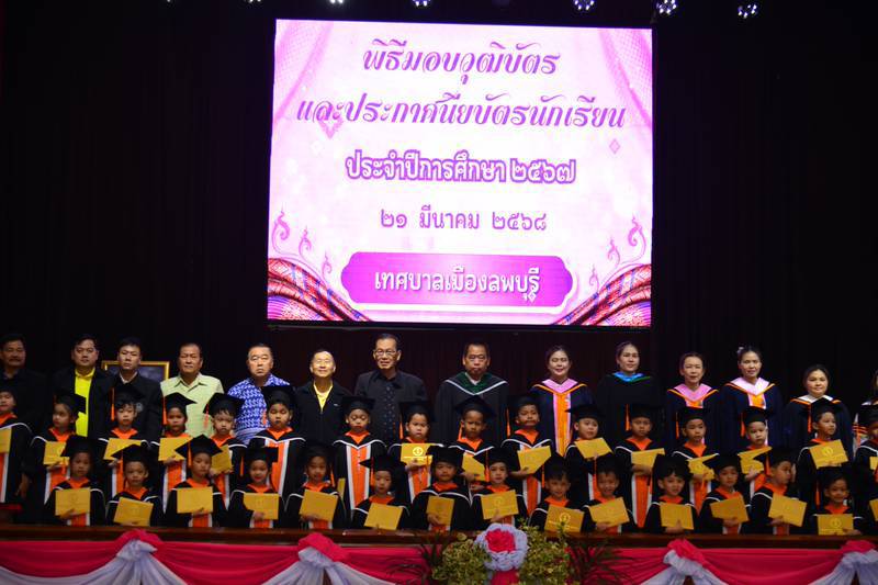 เมื่อวันที่ ๒๑ มีนาคม ๒๕๖๘ นายจำเริญ สละชีพ นายกเทศมนตรีเมืองลพบุรี เป็นประธานในการจัดพิธีมอบวุฒิบัตรนักเรียนระดับชั้นอนุบาล ของโรงเรียนในสังกัดเทศบาลเมืองลพบุรี ประจำปีการศึกษา ๒๕๖๗ ที่ศาลาประชาคมเทศบาลเมืองลพบุรี ซึ่งมีคณะผู้บริหารเทศบาลเมืองลพบุรี ประกอบด้วย นายสมชัย อินปุระ รองนายกเทศมนตรีเมืองลพบุรี นายอนุสรณ์ อัศวสงคราม รองนายกเทศมนตรีเมืองลพบุรี นายสันธนะ บัวชาติ รองนายกเทศมนตรีเมืองลพบุรี คณะสมาชิกสภาเทศบาลเมืองลพบุรี นางสาวมยุรา สุทธิพิบูลย์ รก.ปลัดเทศบาลเมืองลพบุรี หัวหน้าส่วนราชการ ผู้บริหารสถานศึกษาของโรงเรียนในสังกัดเทศบาลเมืองลพบุรี ทั้ง ๕ โรงเรียน คณะครู ผู้ปกครองนักเรียน ประธานชุมชน คณะกรรมการชุมชน ร่วมในพิธีเป็นจำนวนมาก ซึ่งในปีการศึกษานี้ มีนักเรียนโรงเรียนในสังกัดเทศบาลเมืองลพบุรีที่สำเร็จการศึกษาในระดับชั้นอนุบาล ทั้งหมดจำนวน ๑๓๗ คน เป็นโรงเรียนเทศบาล ๑ ระบบสาธิตเทศบาลเมืองลพบุรี จำนวน ๓๙ คน โรงเรียนเทศบาล ๒ ระบบสาธิตเทศบาลเมืองลพบุรี จำนวน ๔๔ คน โรงเรียนเทศบาล ๓ ระบบสาธิตเทศบาลเมืองลพบุรี จำนวน ๑๙ คน โรงเรียนเทศบาล ๕ ระบบสาธิตเทศบาลเมืองลพบุรี จำนวน ๓๕ คน