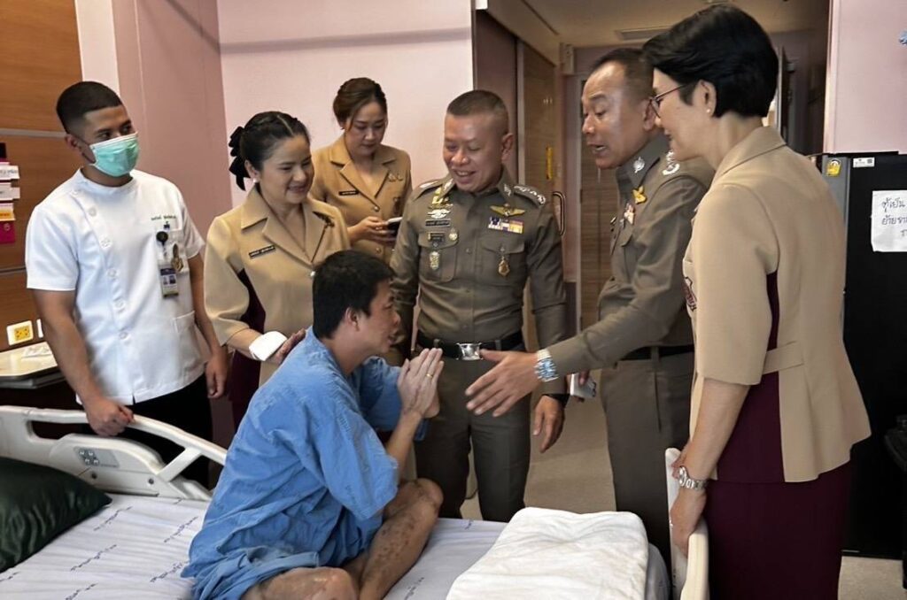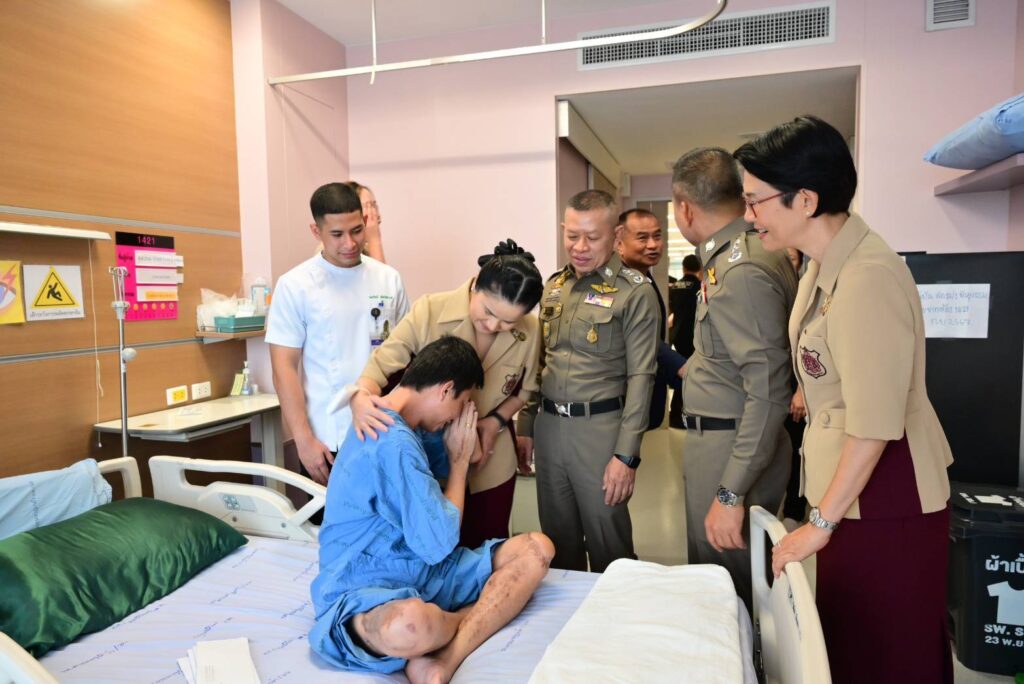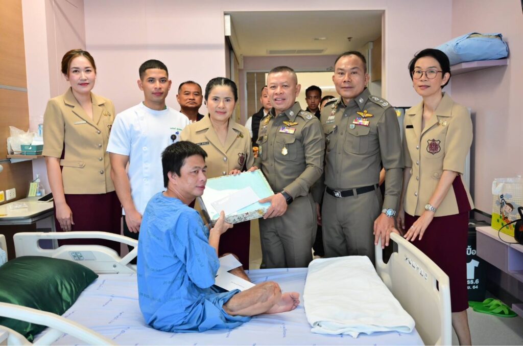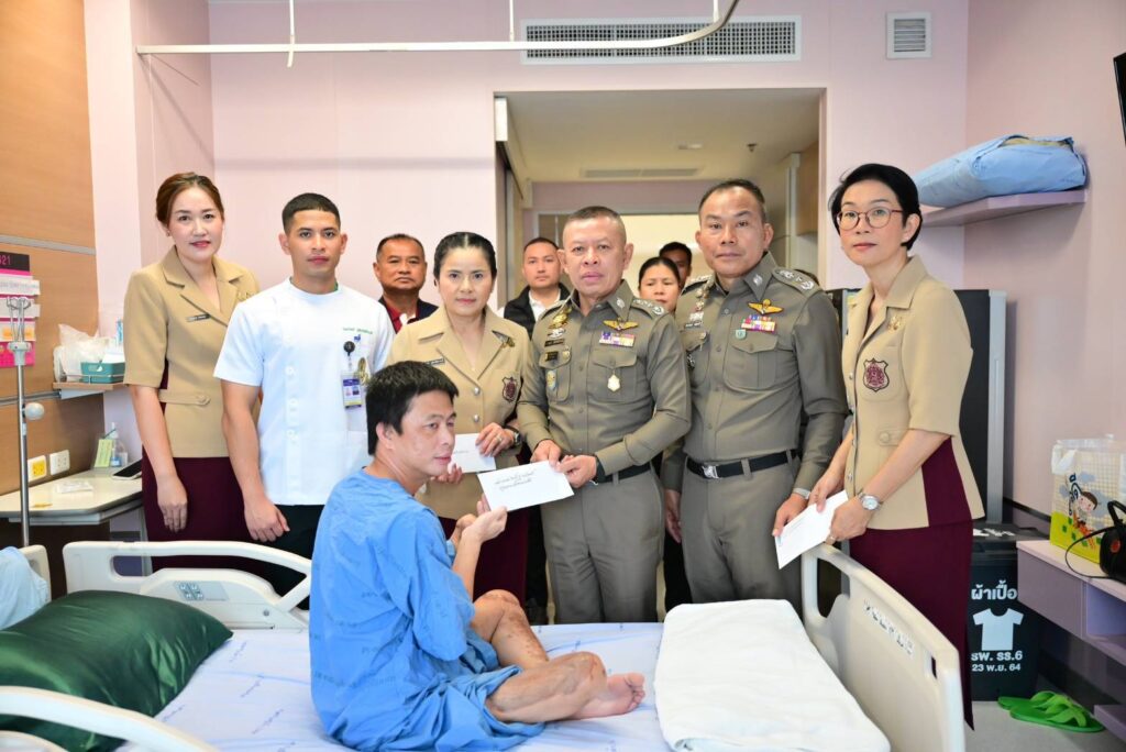 โดยในการนี้ ตนพร้อมคณะได้เป็นตัวแทน พล.ต.อ.กิตติ์รัฐ พันธุ์เพ็ชร์ ผบ.ตร. มอบกระเช้าผลไม้ และเงินช่วยเหลือ จำนวน 20,000 บาท,คุณนภัสนันท์ วุฒิจรัสธำรงค์ กรรมการบริหารสมาคมแม่บ้านตำรวจ ระดับ ตร. ได้เป็นตัวแทนของสมาคมแม่บ้านตำรวจ มอบเงินจำนวน 5,000 บาท และได้มอบเงินส่วนตัว 10,000 บาทและเงินช่วยเหลือของ ผบช.ภ.9 จำนวน 10,000 บาท เพื่อช่วยเหลือครอบครัวข้าราชการตำรวจที่ได้รับบาดเจ็บ อันเป็นการบรรเทาความเดือดร้อน และส่งเสริมขวัญกำลังใจให้กับข้าราชการตำรวจ ที่ได้อุทิศตนเสียสละในการปฏิบัติหน้าที่