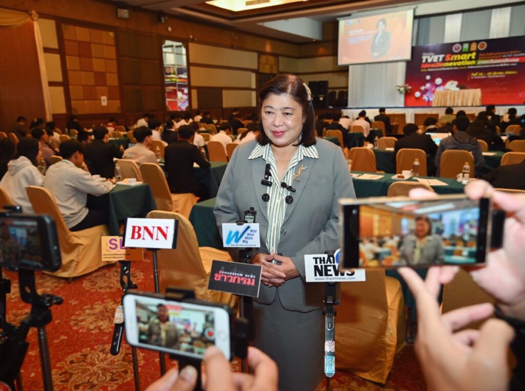 ดร.วิภารัตน์ ดีอ่อง ผู้อำนวยการสำนักงานการวิจัยแห่งชาติ (ผอ.วช.) กล่าวว่า (วช.) และ สอศ. ได้ตระหนักถึงความสำคัญในการพัฒนาบุคลากรอาชีวศึกษาให้มีความรู้ ความสามารถ และทักษะด้านนวัตกรรมที่จำเป็นในยุคที่เทคโนโลยีก้าวหน้าไปอย่างรวดเร็ว โดยกิจกรรมในครั้งนี้ถือเป็นก้าวสำคัญในการพัฒนาอาชีวศึกษาของประเทศ ผ่านการเสริมสร้างและถ่ายทอดองค์ความรู้ ทักษะ รวมถึงเทคนิคในการประดิษฐ์คิดค้น ซึ่งจะช่วยกระตุ้นให้เยาวชนและบุคลากรสายอาชีวศึกษาตระหนักถึงความสำคัญของการวิจัยและการประดิษฐ์คิดค้น ทั้งนี้ การพัฒนานวัตกรรมในอาชีวศึกษาจะยั่งยืนได้จำเป็นต้องสร้างความตระหนักรู้ในความสำคัญของนวัตกรรมพร้อมทั้งส่งเสริมการสร้างสภาพแวดล้อมที่เอื้อต่อการพัฒนานวัตกรรมในสถานศึกษาและภาคอุตสาหกรรม เช่น การสนับสนุนการวิจัย การจัดตั้งพื้นที่สำหรับแสดงผลงาน และการสนับสนุนการลงทุนในเทคโนโลยีที่ทันสมัย ซึ่งทั้งหมดนี้จะช่วยเสริมสร้างความสามารถในการพัฒนานวัตกรรมที่มีคุณค่าต่อสังคมและเศรษฐกิจในระยะยาว