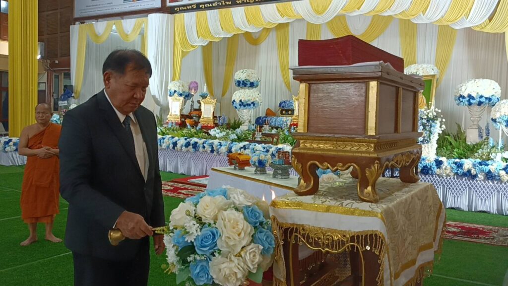 เมื่อวันอาทิตย์ที่ 23 มีนาคม 2568 ที่ศาลาพระปริยัติธรรม( จันทร์ภักดี) วัดป้อมวิเชียรโชติการาม ( พระอารามหลวง) ถ.วิเชียรโชฎก ต.มหาชัย อ.เมือง จ.สมุทรสาคร สถานที่ตั้งสรีระสังขาร พระราชปริยัติคุณ (หลวงพ่อสมพงษ์ สุวโจ) เจ้าอาวาส วัดป้อมวิชียรโชติการาม อดีตที่ปรึกษาเจ้าคณะภาค ๑๔ โดย นายอนุรักษ์ ทศรักษ์ อดีตอธิบดี กรมการจัดหางาน พร้อมด้วย นายวันชัย สาครมณีรัตน์ จัดหางานจังหวัดสมุทรสาคร และผู้เกี่ยวข้องมาเป็นเจ้าภาพบำเพ็ญกุศล สวดพระอภิธรรม พระราชปริยัติคุณ โดยมี พระครูสาครศีลโสภณ ผู้ช่วยเจ้าอาวาส รักษาการเจ้าอาวาส- ที่ปรึกษาเจ้าคณะอำเภอเมือง- เจ้าคณะตำบลนาดี พร้อมด้วยคณะสงฆ์ วัดป้อมวิเชียรโชติการามให้การต้อนรับ